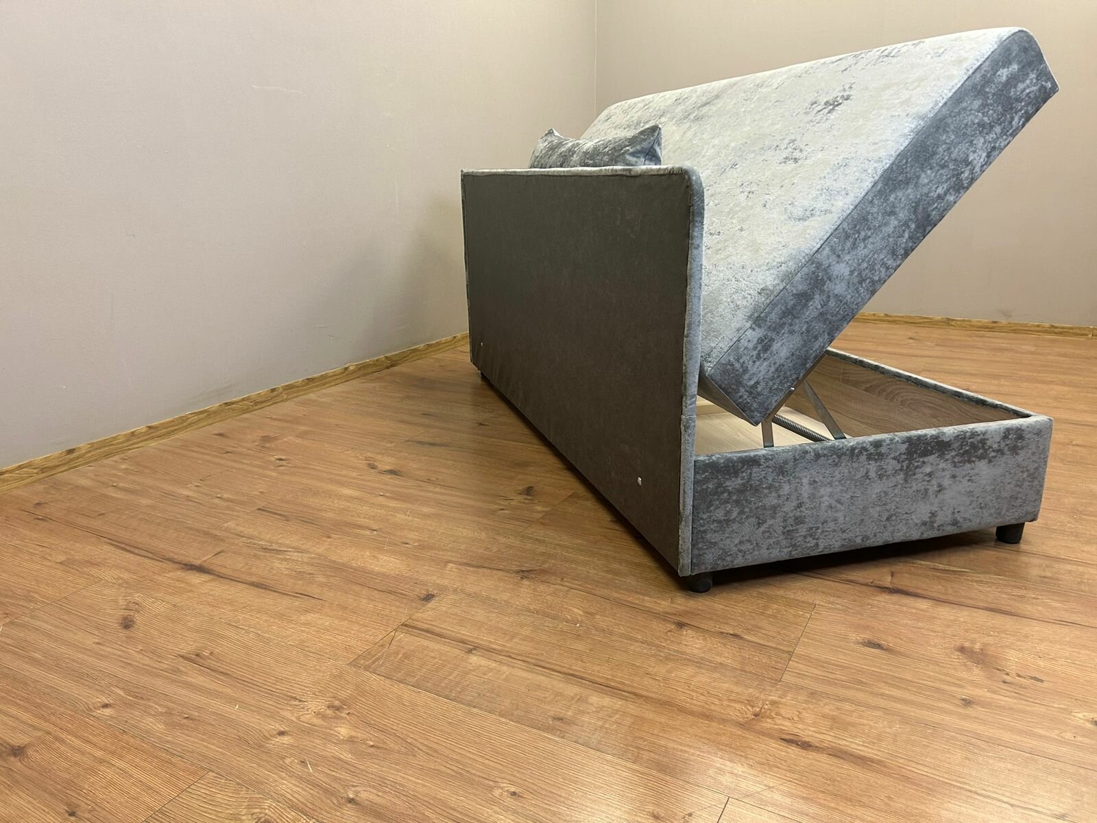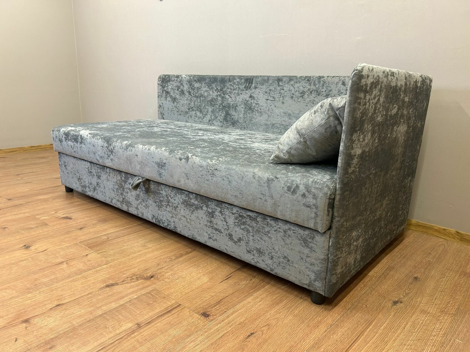 Диван-кровать, тахта серая с ящиком для белья, односпальная, велюр