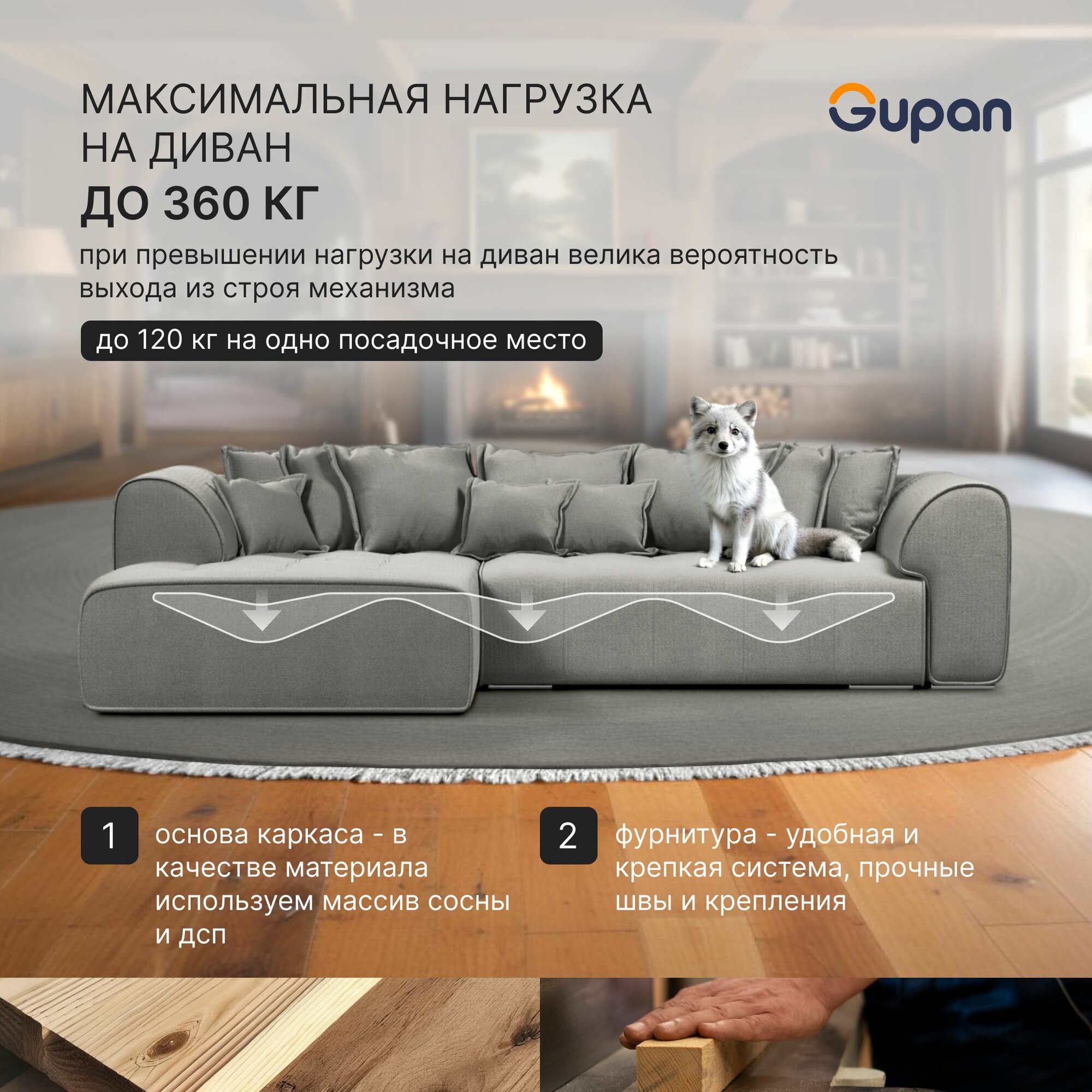 СохранитьДиван угловой Gupan Саян / Sayan Велюр Amigo Grey, раскладной, механизм выкатной, независимые пружины, с ящиком для белья интересное: