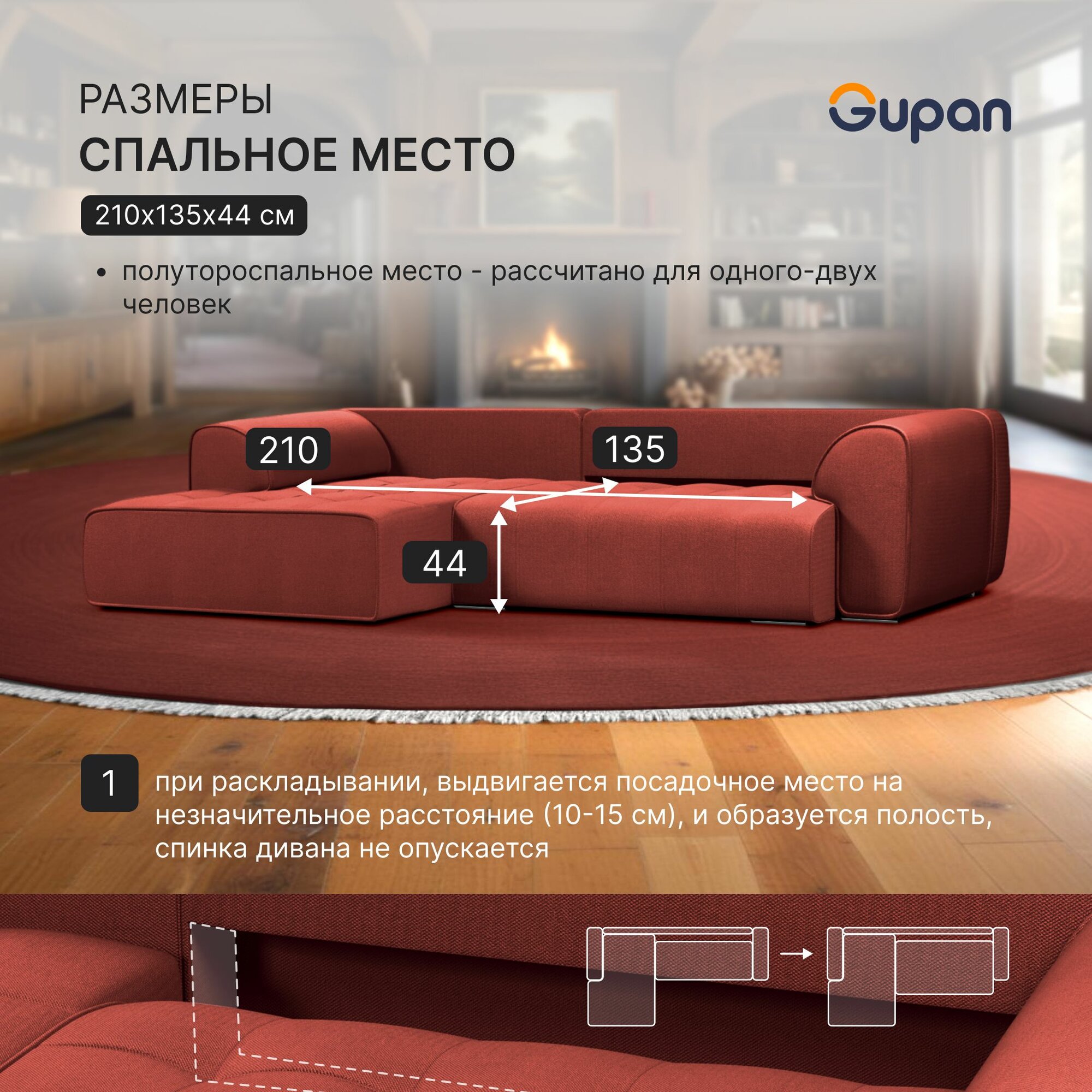 СохранитьДиван угловой Gupan Саян / Sayan Велюр Amigo Terra, раскладной, механизм выкатной, независимые пружины, с ящиком для белья интересное: