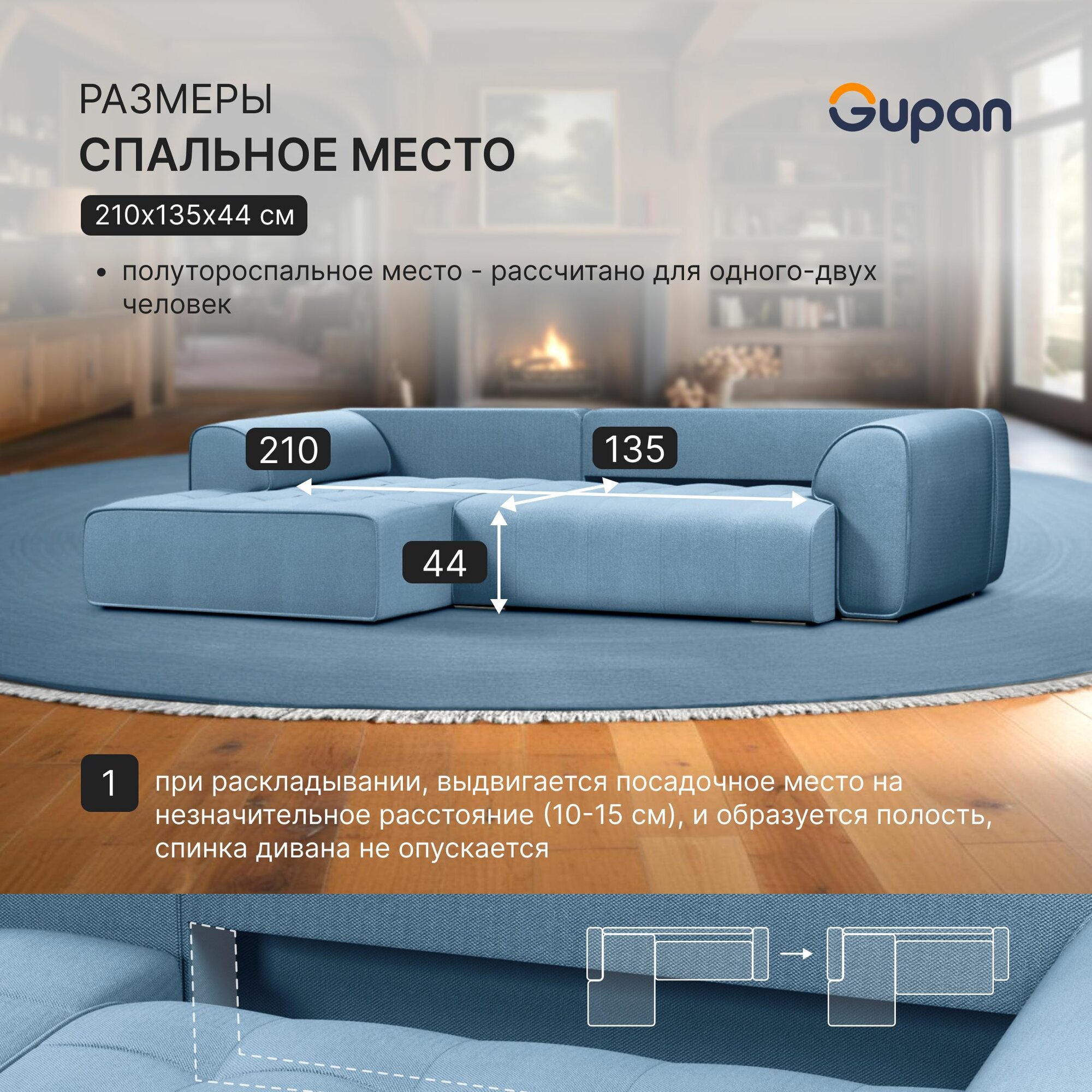 СохранитьДиван угловой Gupan Саян / Sayan Велюр Amigo Blue, раскладной, механизм выкатной, независимые пружины, с ящиком для белья интересное: