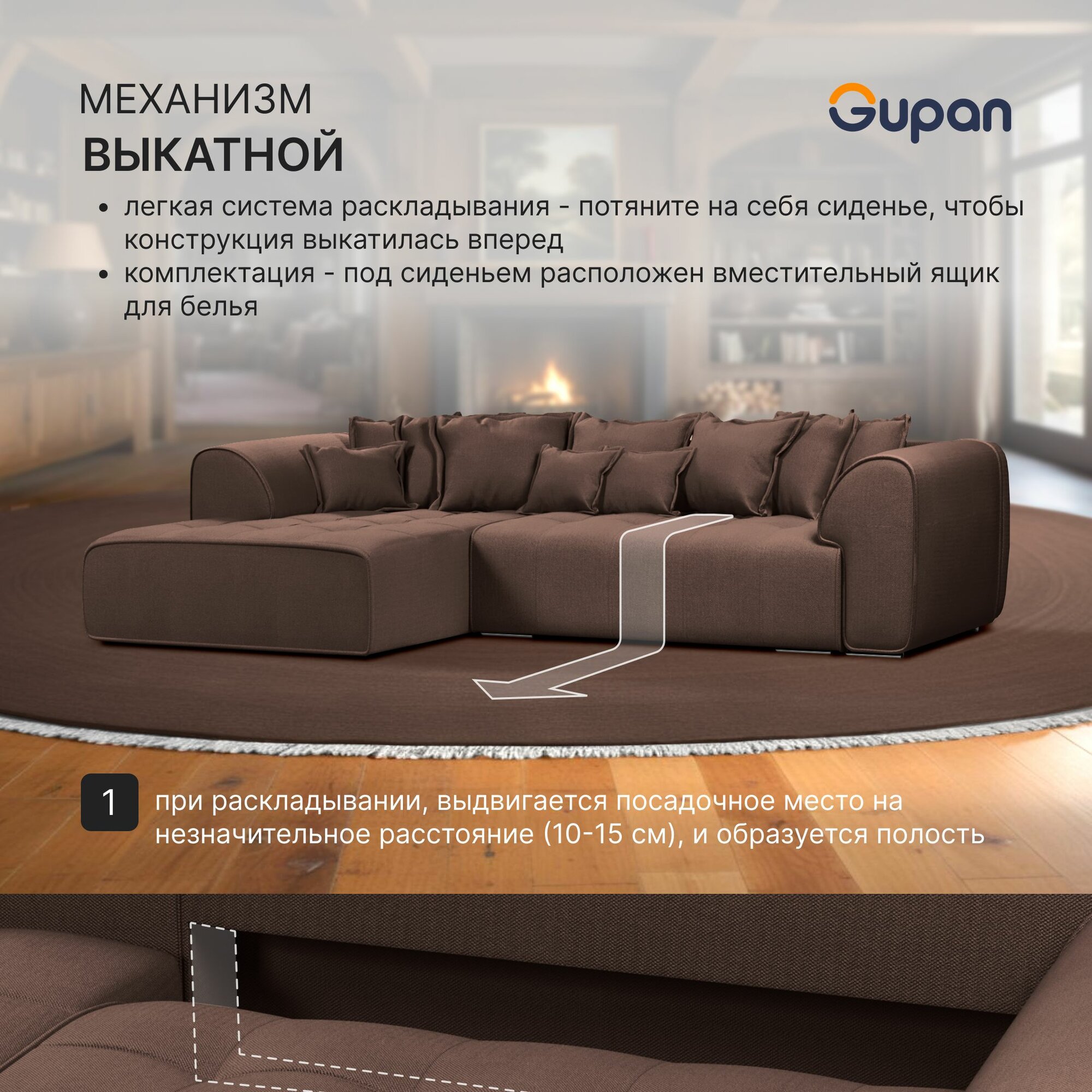 СохранитьДиван угловой Gupan Саян / Sayan Велюр Amigo Coffee, раскладной, механизм выкатной, независимые пружины, с ящиком для белья интересное: