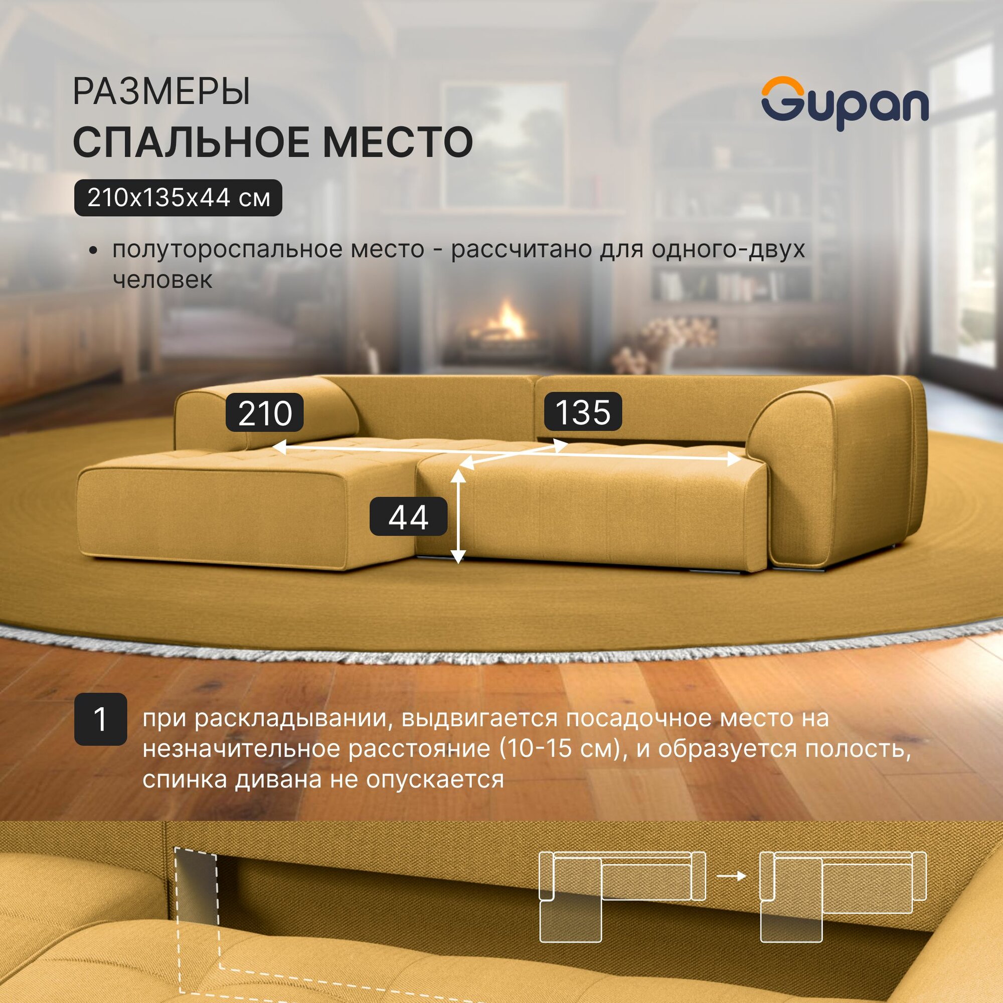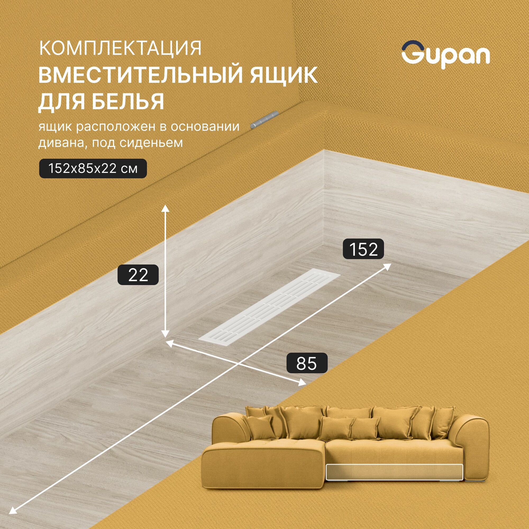 СохранитьДиван угловой Gupan Саян / Sayan Велюр Amigo Yellow, раскладной, механизм выкатной, независимые пружины, с ящиком для белья интересное: