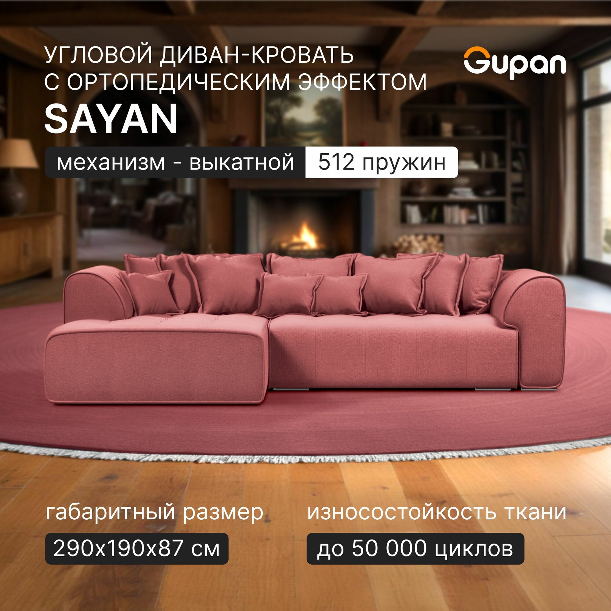 СохранитьДиван угловой Gupan Саян / Sayan Велюр Amigo Berry, раскладной, механизм выкатной, независимые пружины, с ящиком для белья интересное: