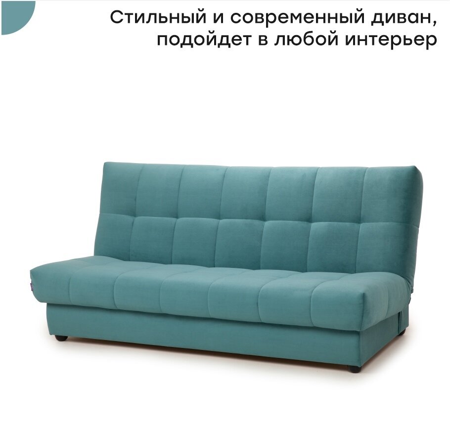 Диван кровать мягкий прямой с положением релакс Венера механизм клик-кляк 200 × 96 × 95 , голубой, Мебельная Фабрика Аврора