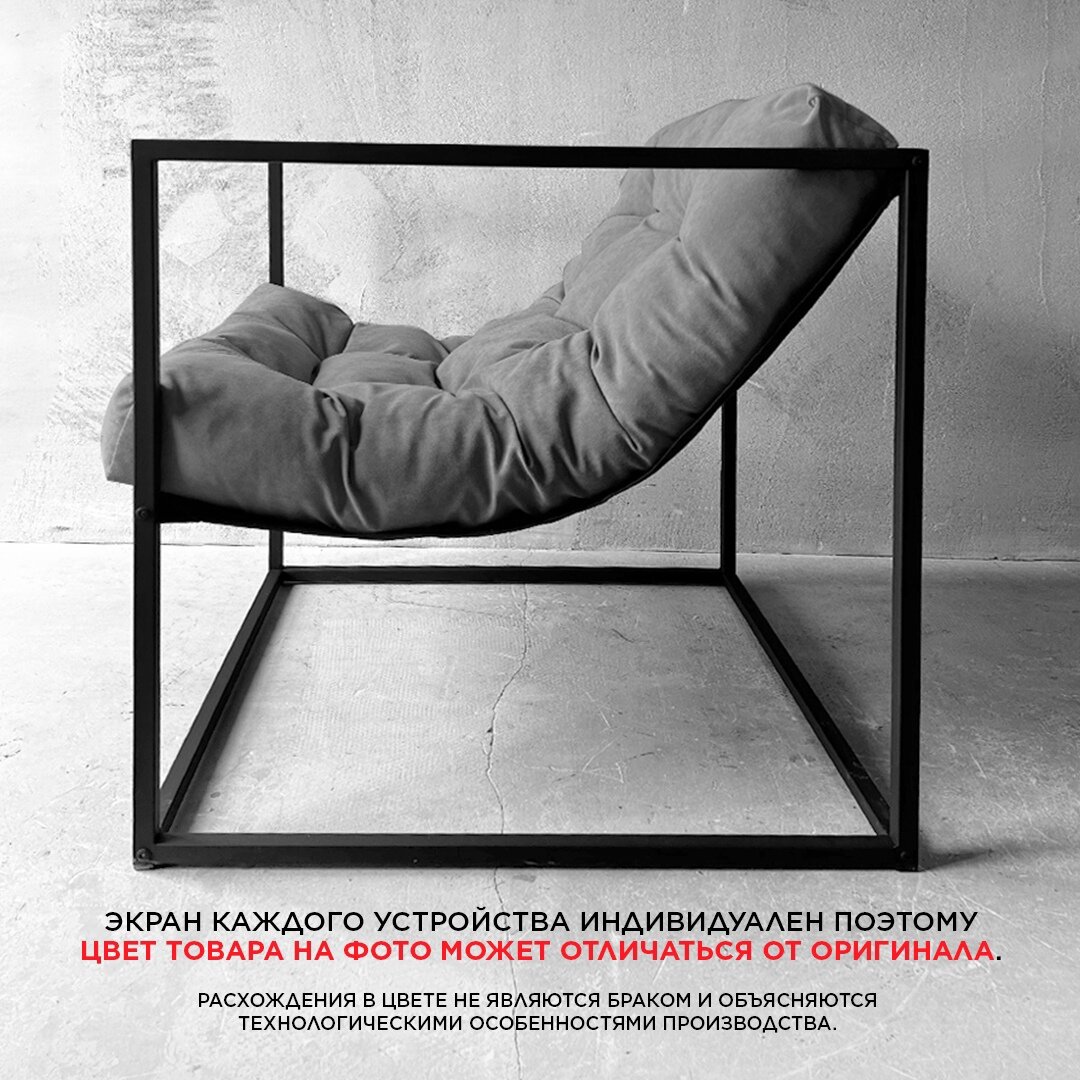 Кресло мягкое удобное для отдыха, уличное, на балкон, на веранду, в стиле лофт, минимализм, Лофтовик + Серый велюр