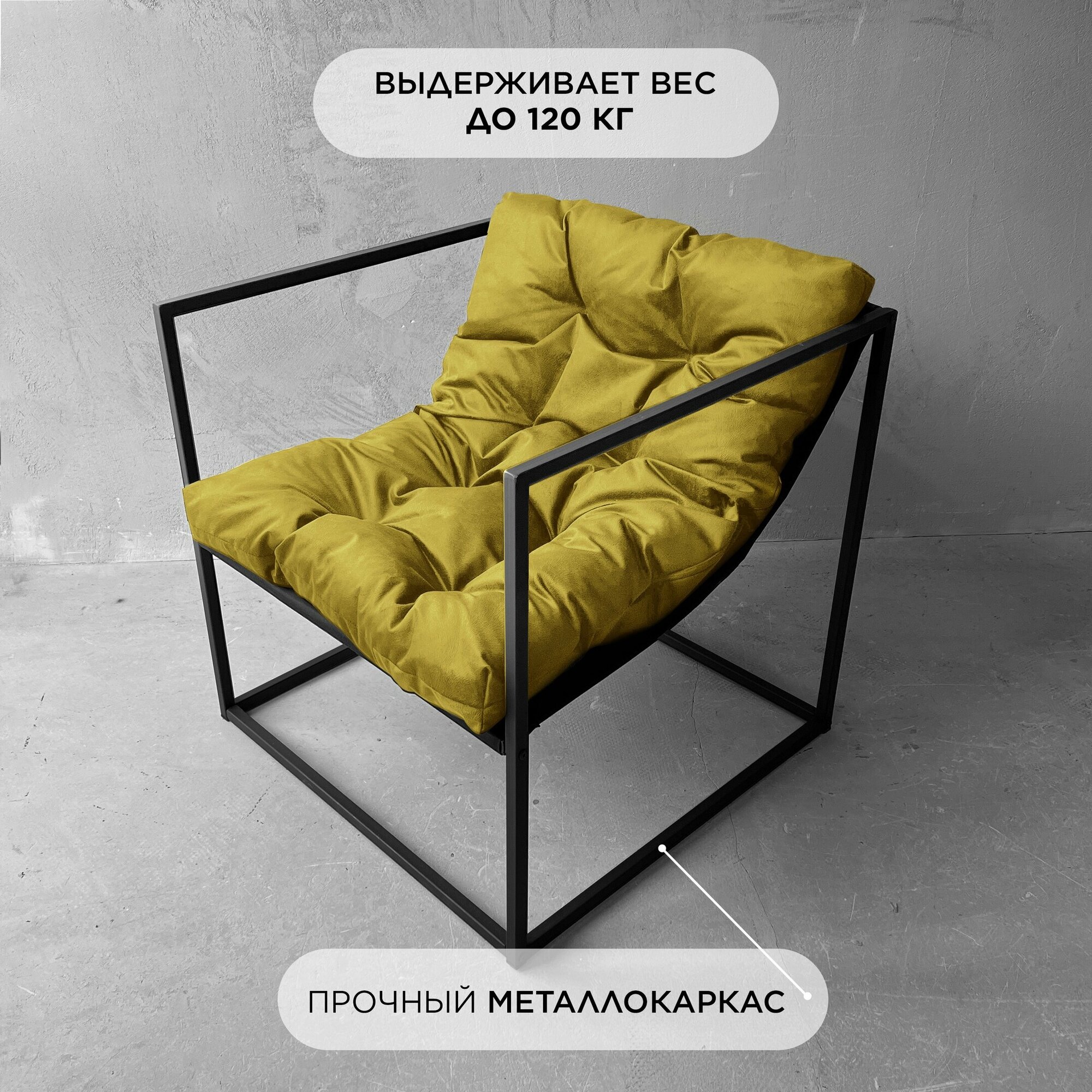 СохранитьКресло для дома и офиса "Лофтовик + желтый велюр для дома для офиса 70х70х70 интересное: