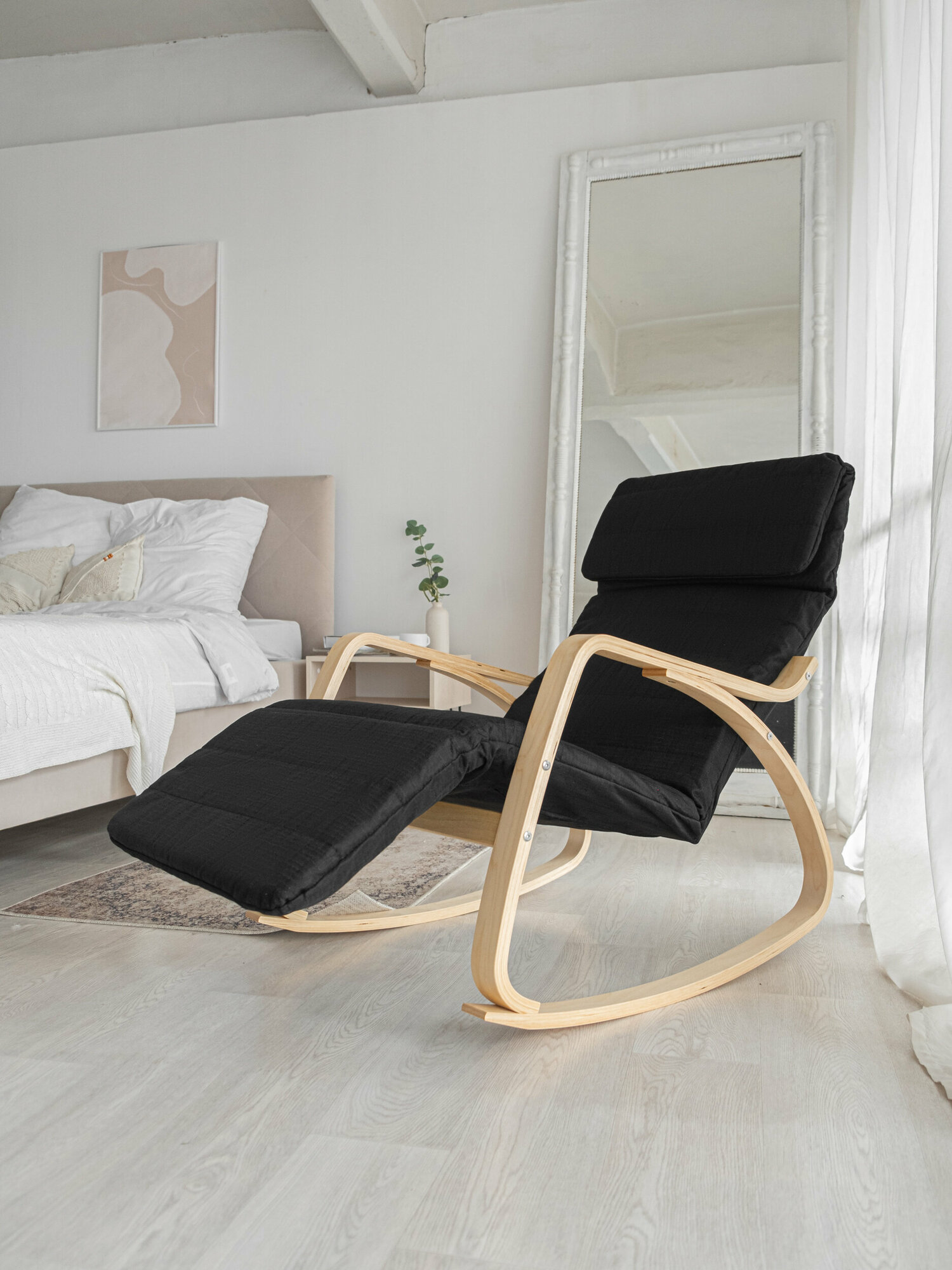 Кресло-качалка, черное, с раскладной подставкой для ног интересное: