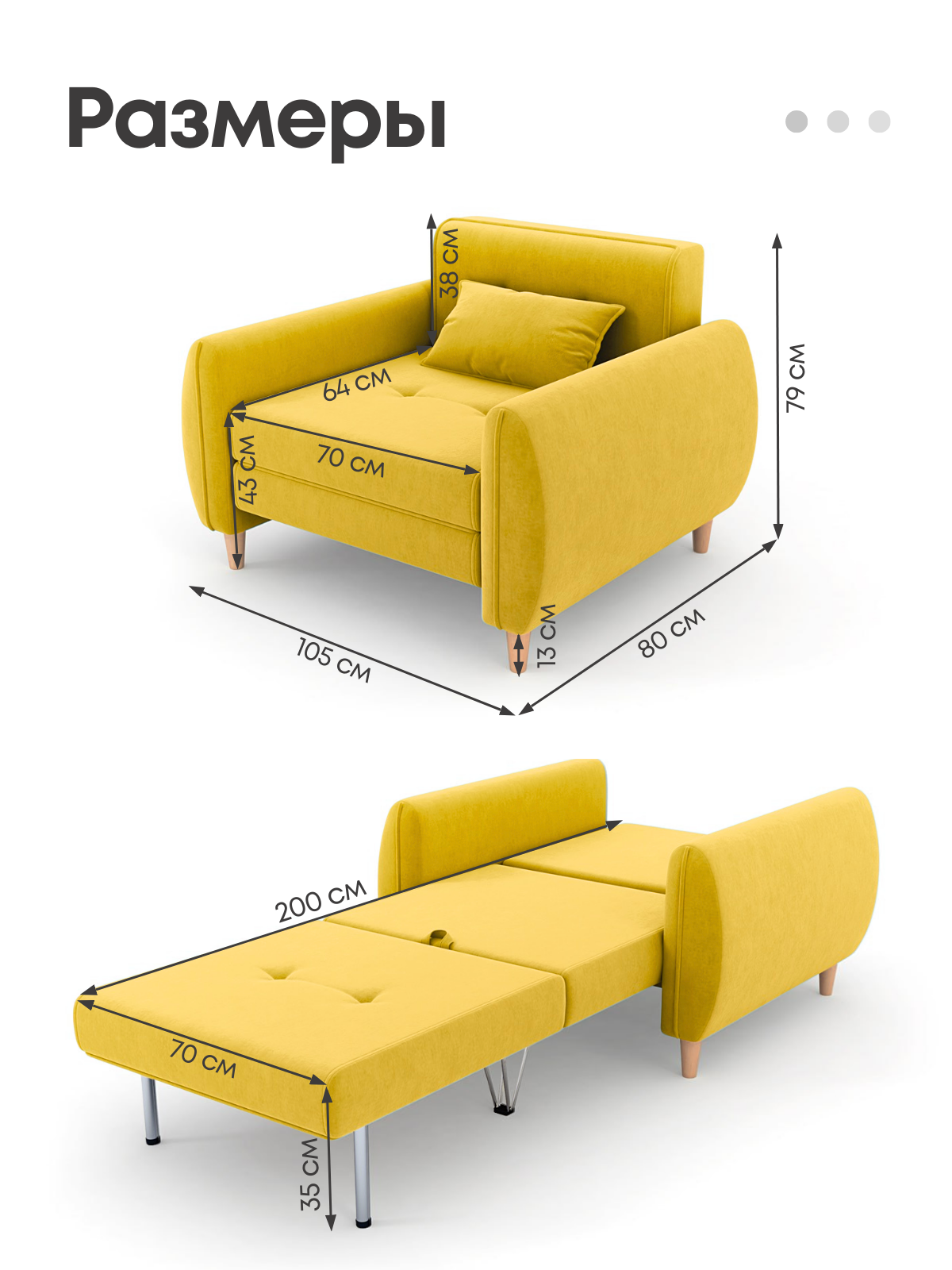 | Комплектация | Кресло-кровать на высоких ножках (13 см), декоративная подушка в подарок. |