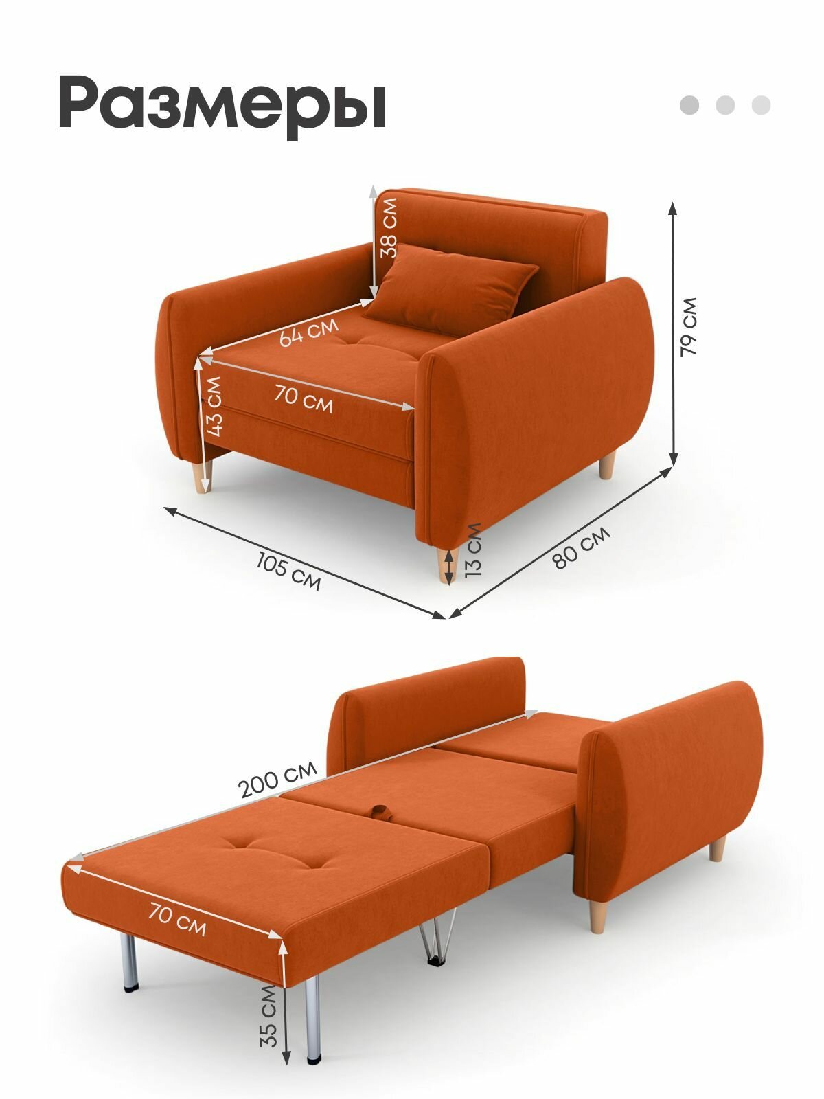 | Комплектация | Кресло-кровать на высоких ножках (13 см), декоративная подушка в подарок. |