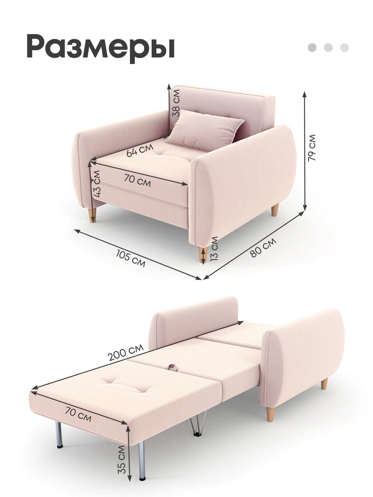 | Комплектация | Кресло-кровать на высоких ножках (13 см), декоративная подушка в подарок. |