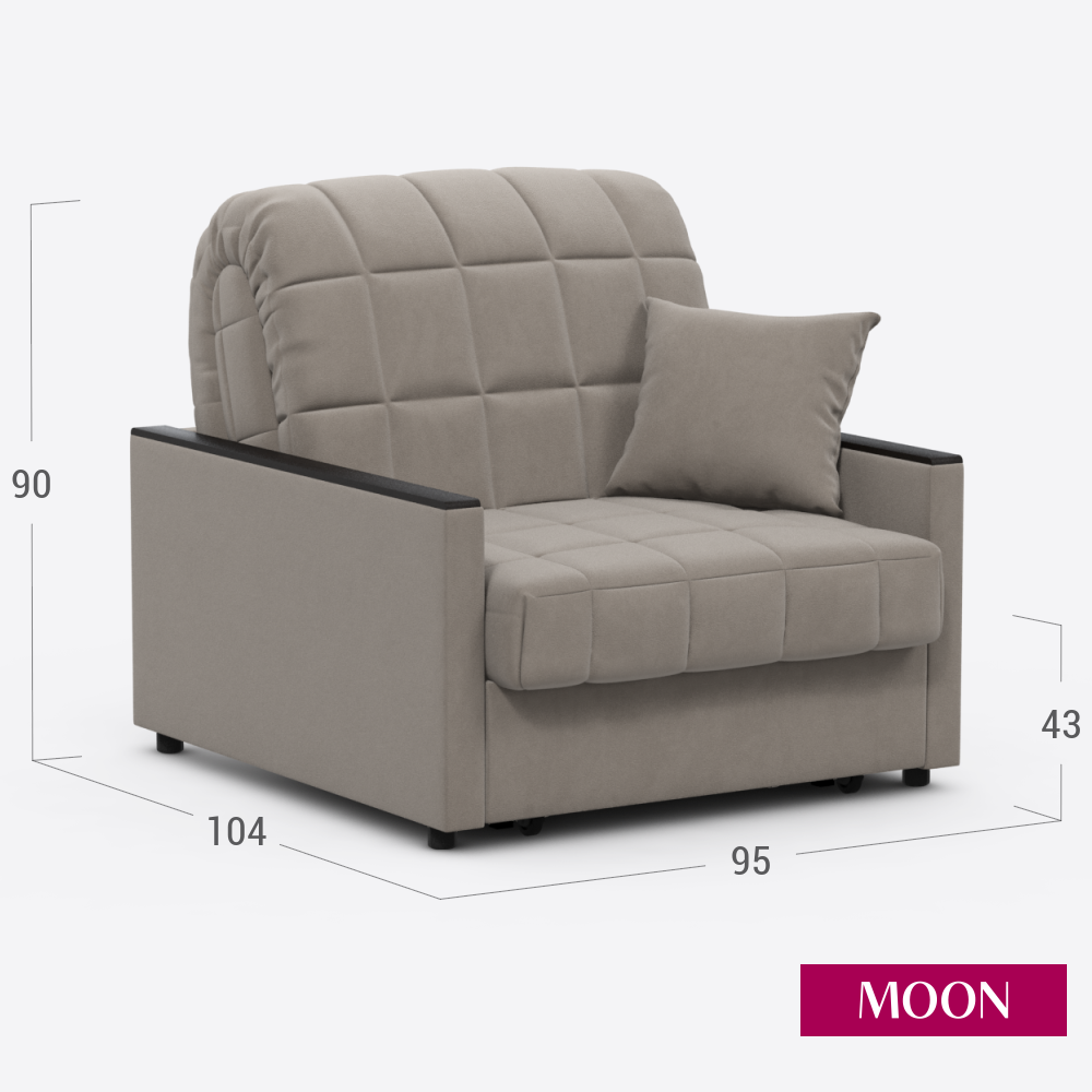 Кресло кровать для дома, темно бежевый, Аккордеон MOON FAMILY 134, 95х104х90 см. Эксклюзивная пена UniqFoam