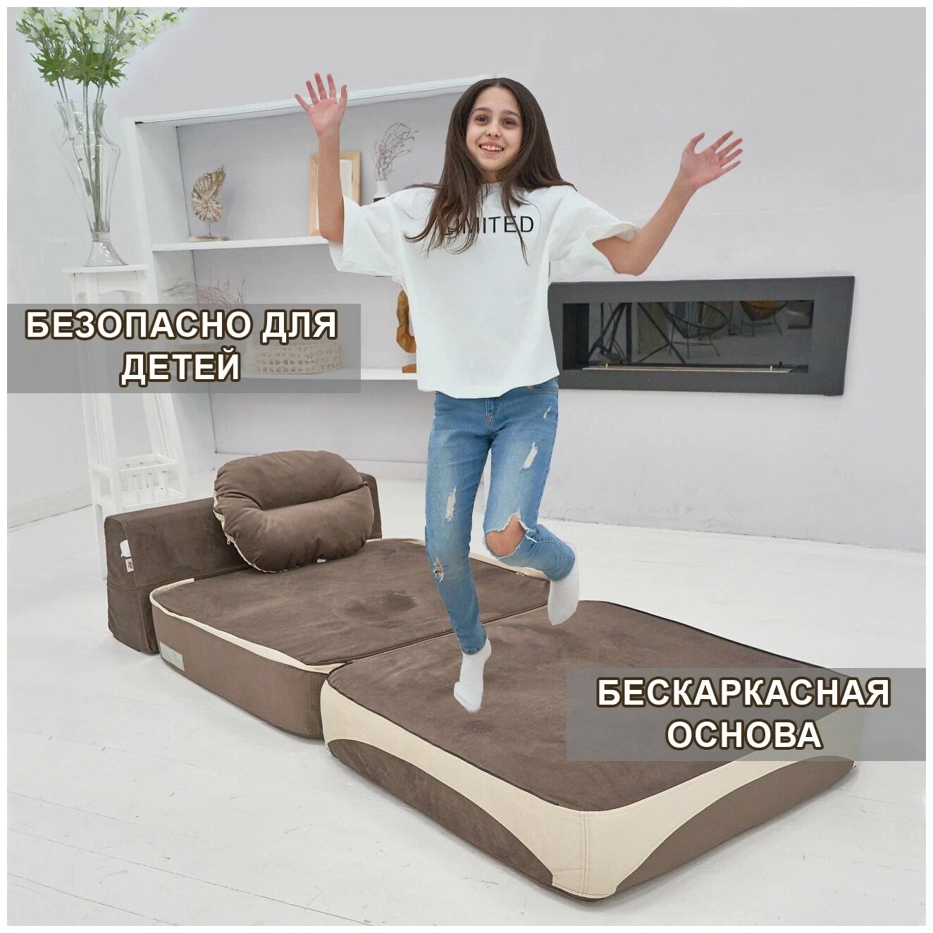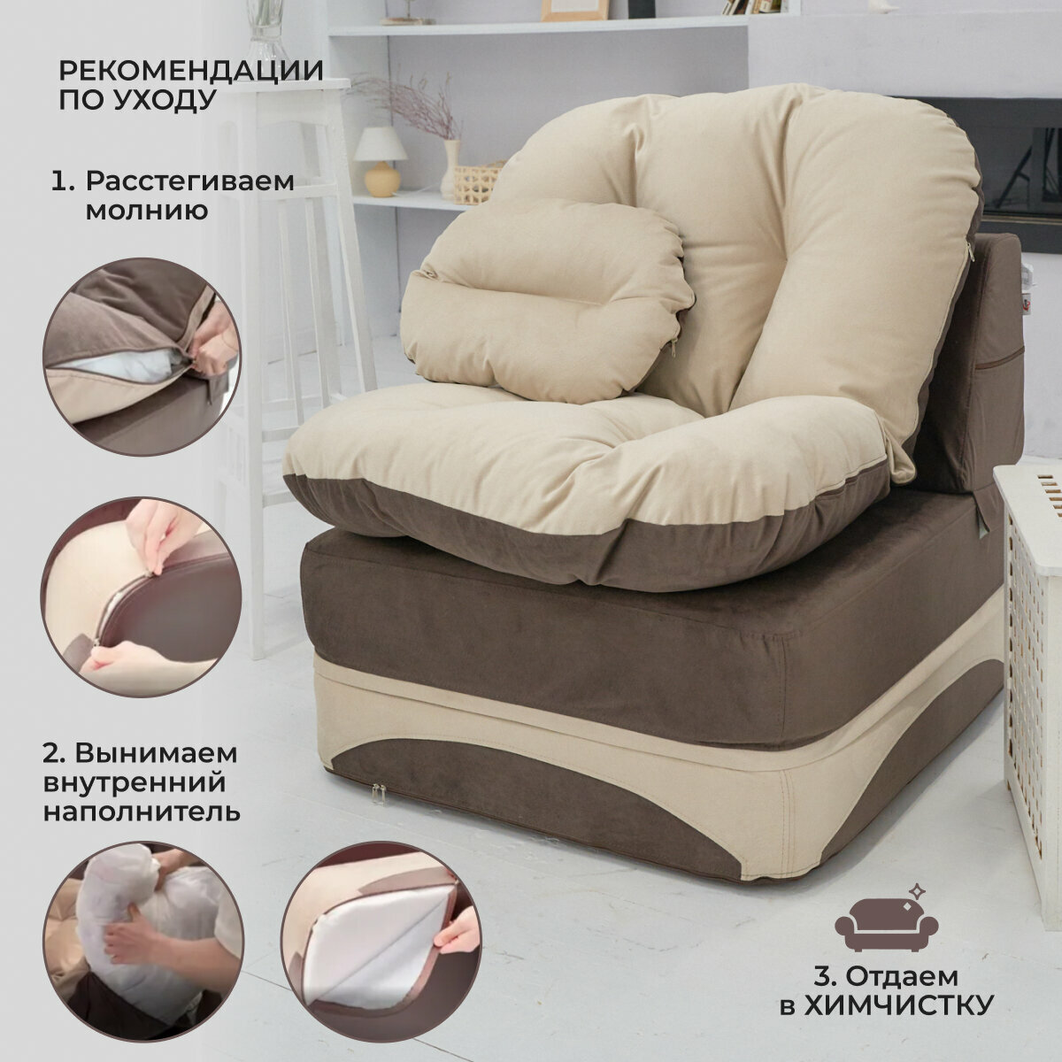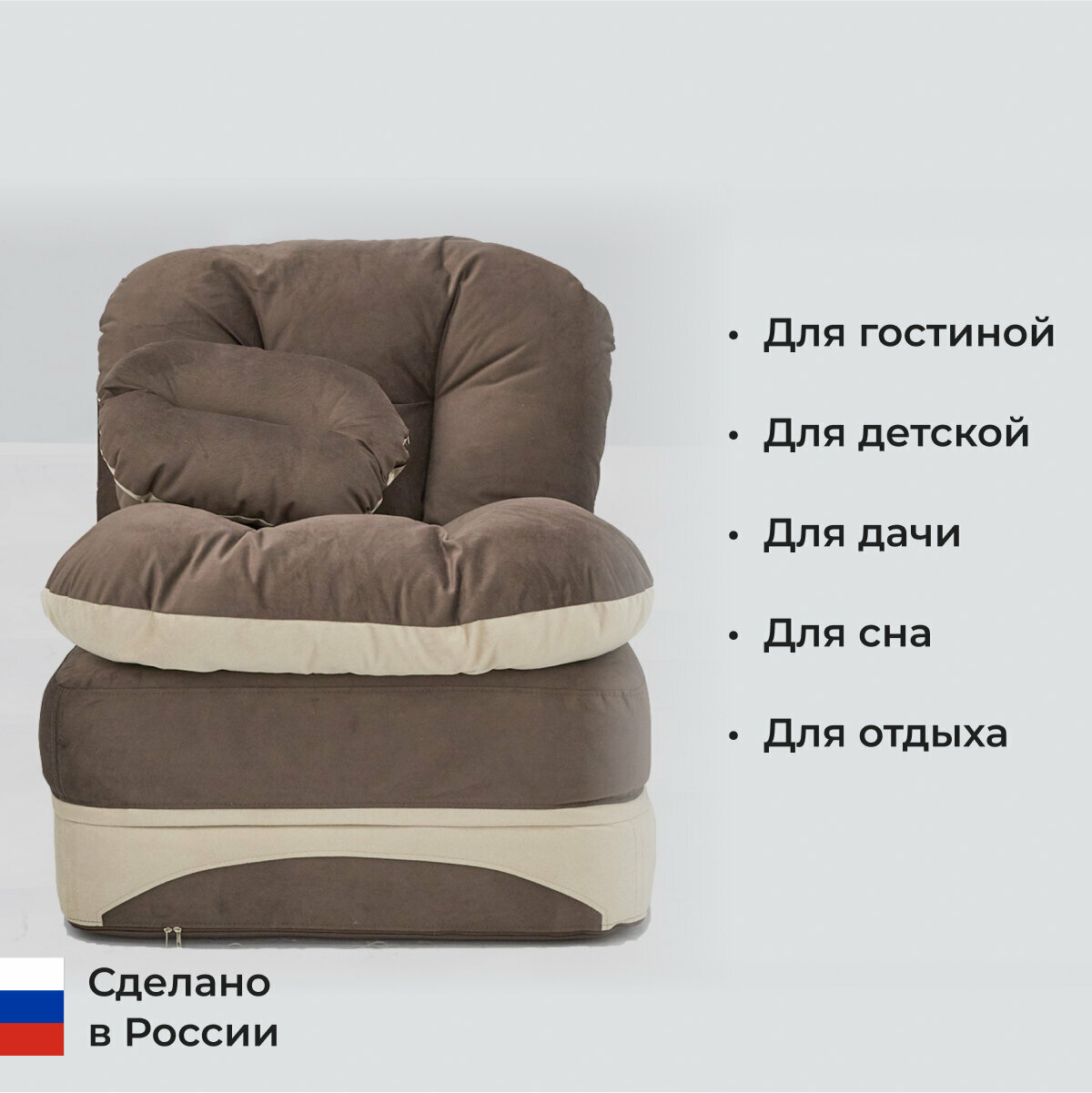 СохранитьКресло кровать раскладное, бескаркасное 90*95 см с матрасом Клиффорд, спальное место 90*230 см, коричневое с бежевым интересное: