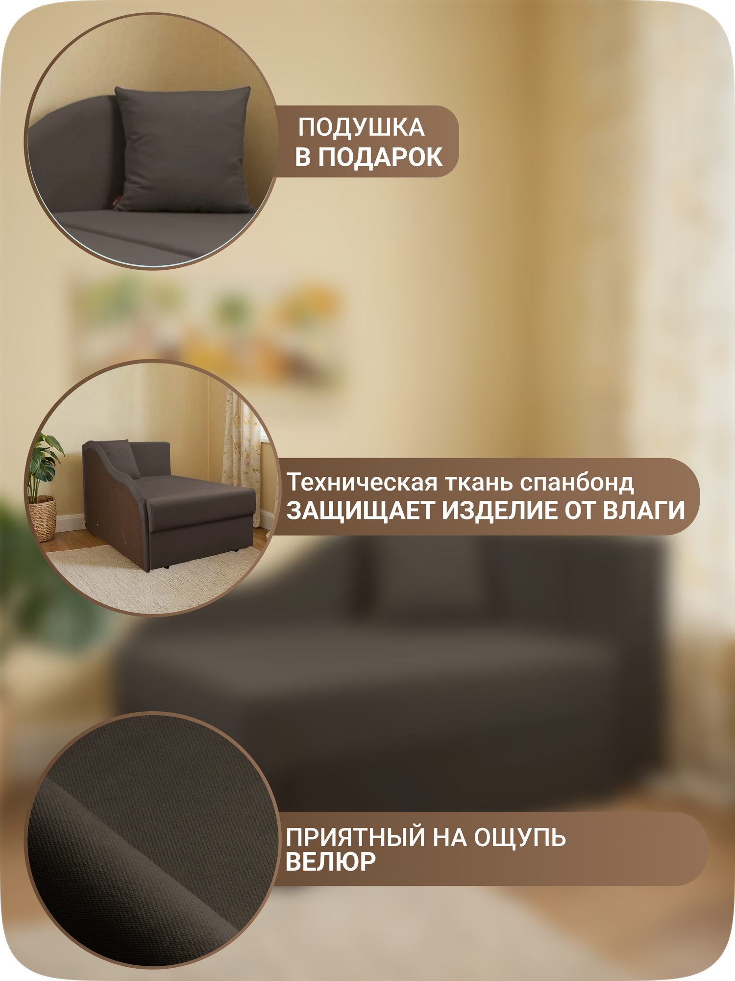 Кресло кровать коричневое с подушкой Совенок 185*84 спальное место интересное: