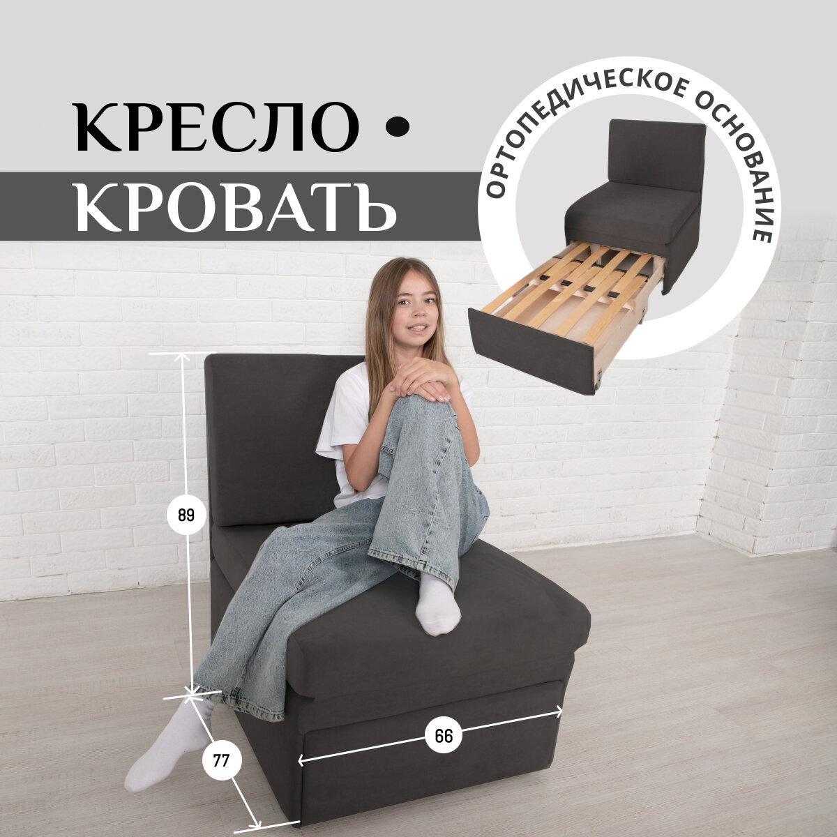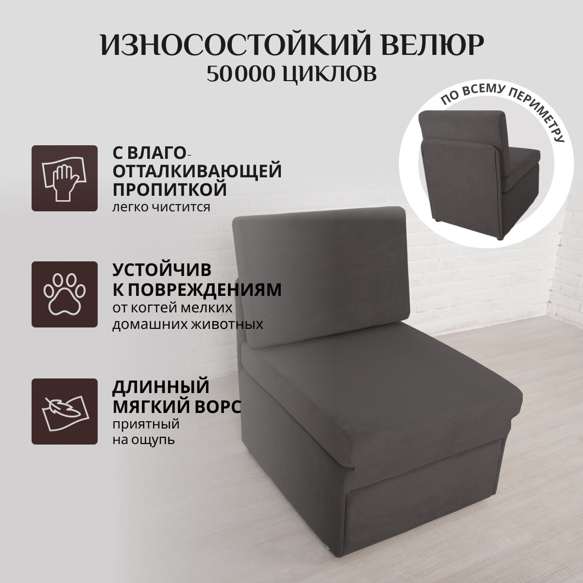 Кресло-кровать на балкон Кресло Brendoss 505 раскладное, кресло-кровать без подлокотников, материал износостойкий велюр, цвет графит