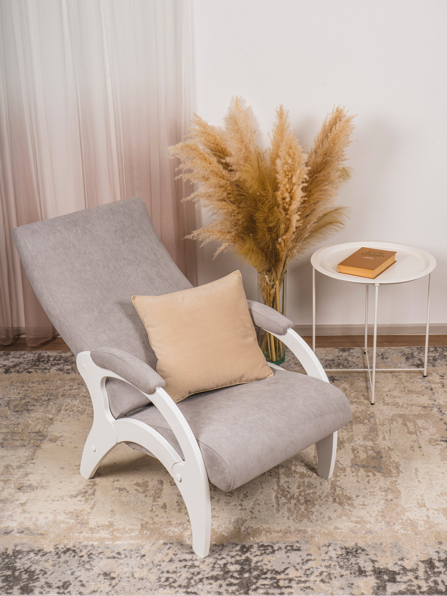 Кресло мягкое для отдыха, дома и дачи Glider Дельфин с мягкими подлокотниками и регулируемой спинкой 3 положения, цвет серый