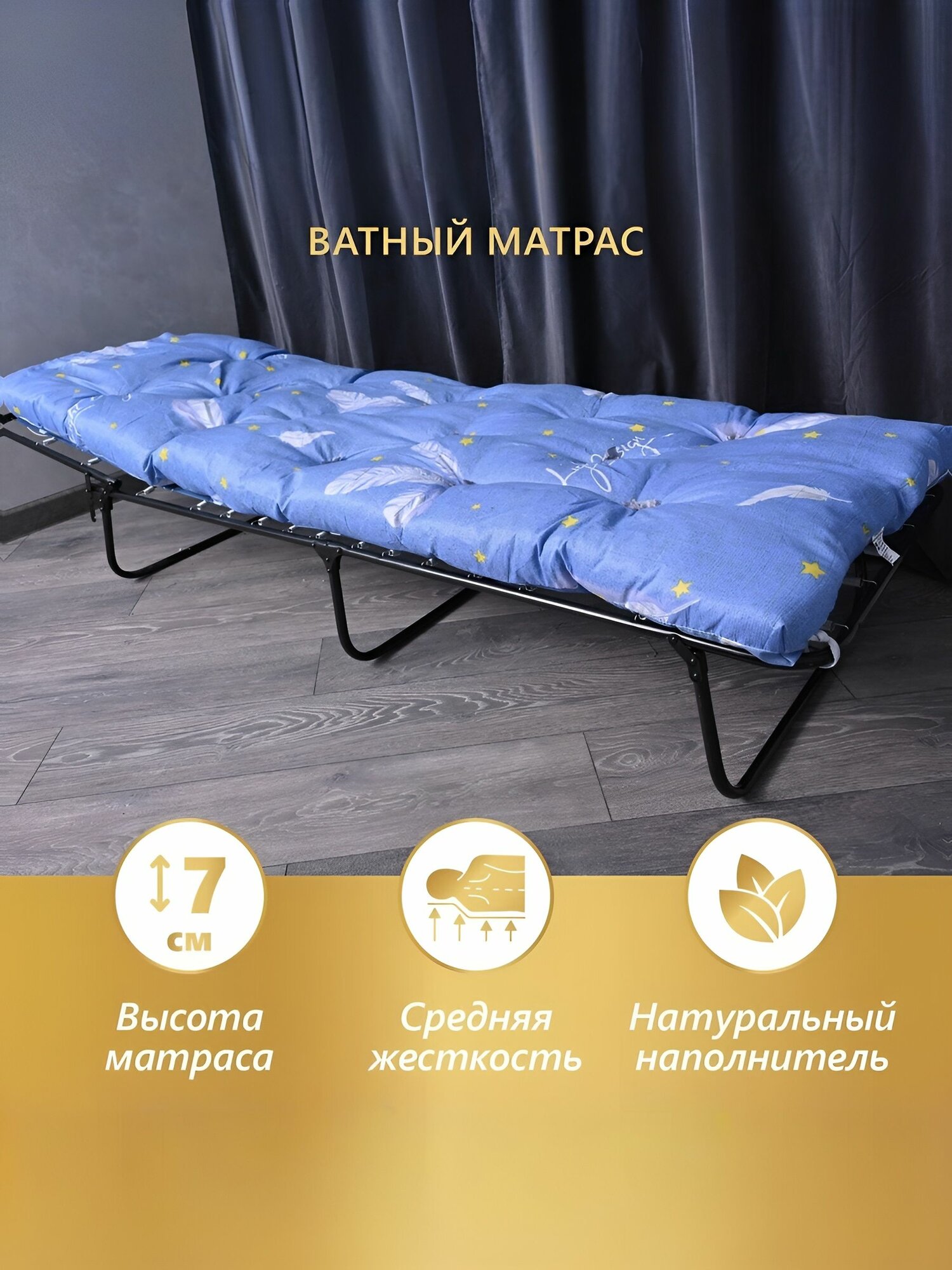 Раскладушка с ватным матрасом ПЭ взрослая КР-70, спальное место 65*192, регулируемый подголовник
