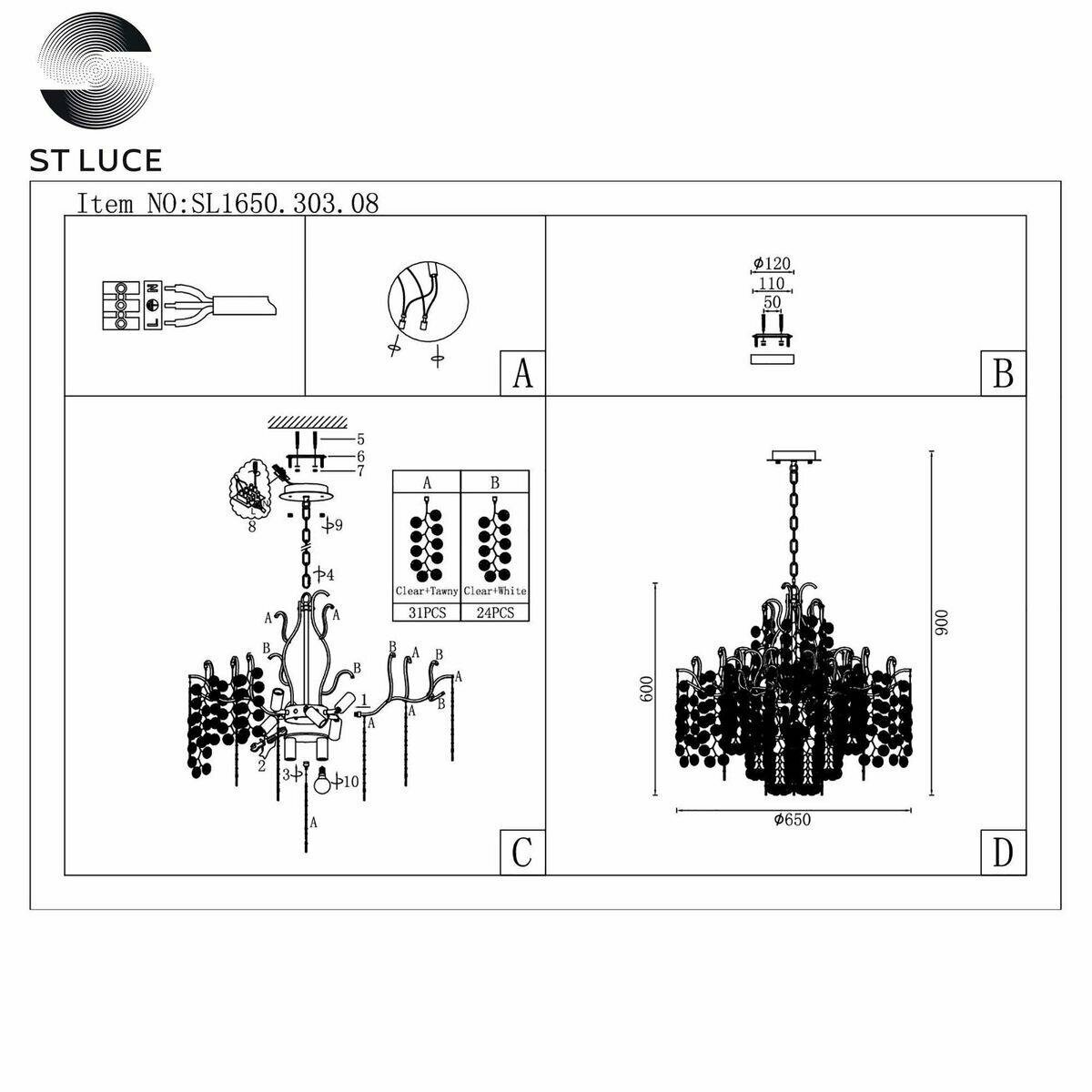 СохранитьSL1650.303.08 Люстра подвесная ST-Luce Латунь/Прозрачный, Золотой E14 8*60W интересное: