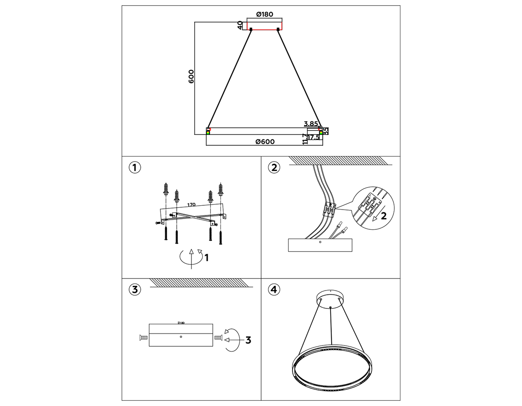 Подвесной светодиодный светильник FL5852 BK черный 35W 3000K/4200K/6400K D600*600 (без ПДУ)