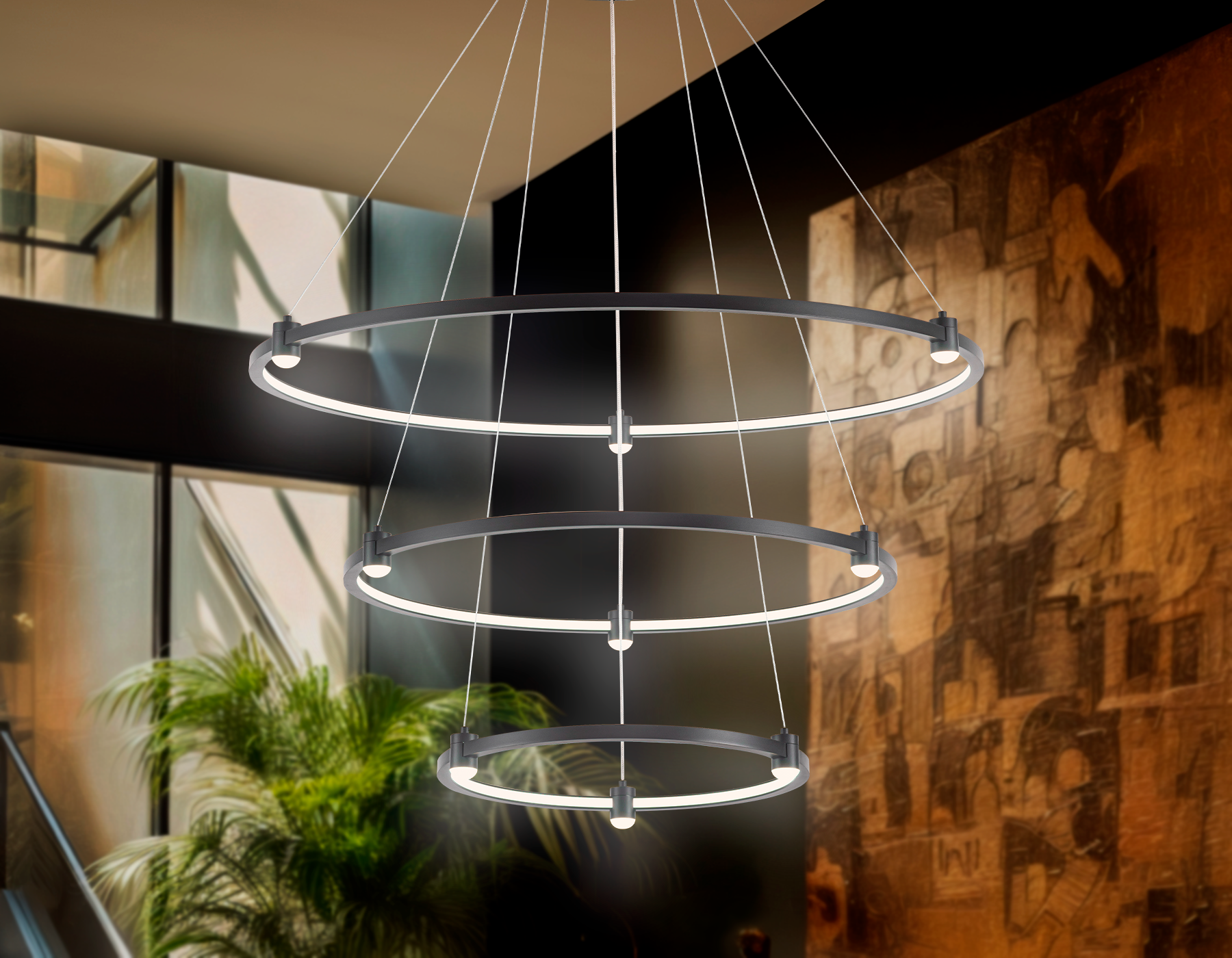 Подвесной светодиодный светильник FL51639/6 BK/GD черный/золото 3000K/4200K/6400K 50W D800*780 (Без ПДУ)