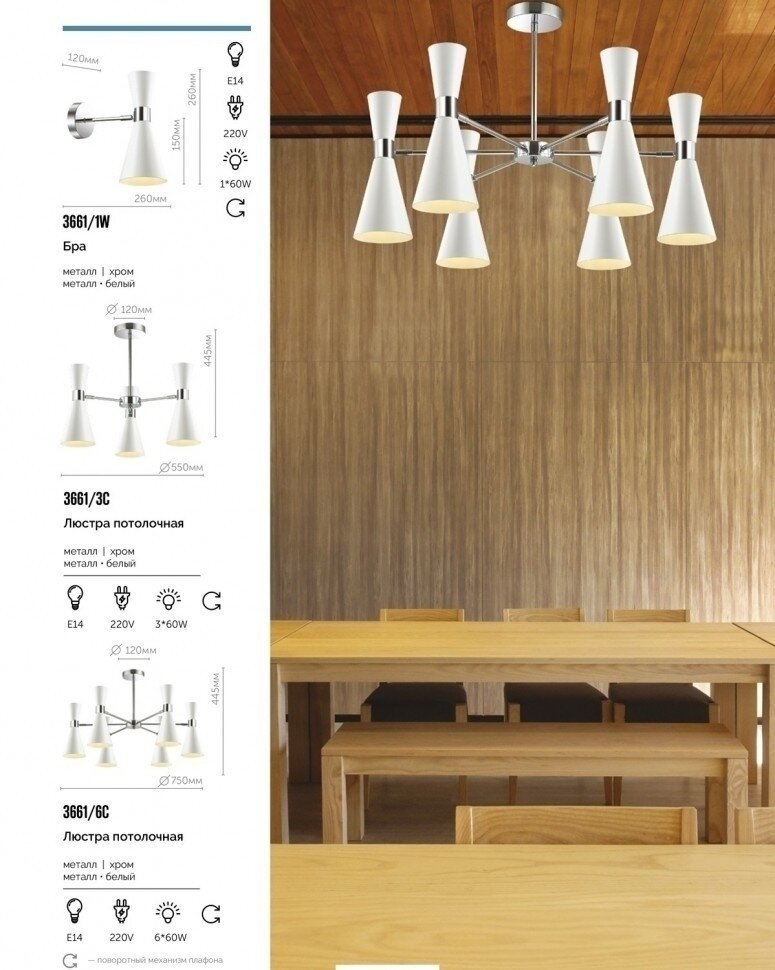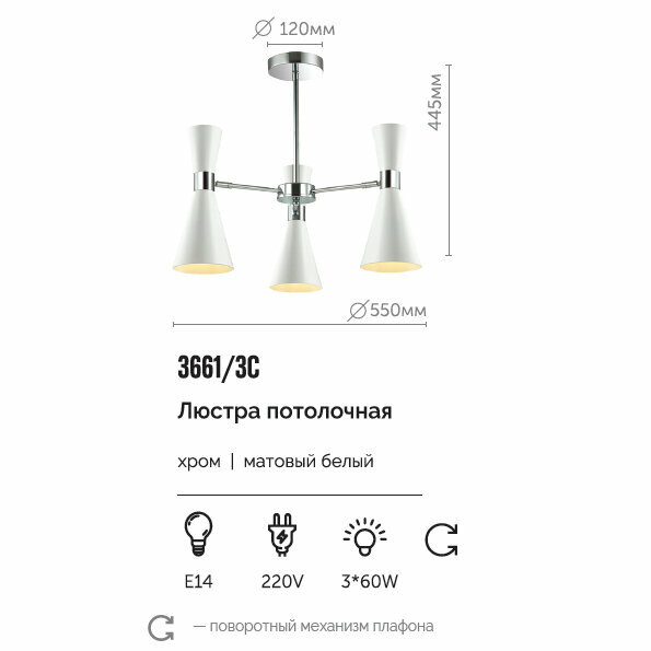 Люстра потолочная LUMION QUINN 3661/3C 3 лампы по 60 Вт, белого цвета, хром