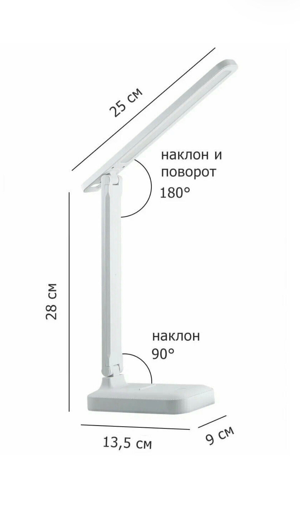 | Особенности | лампы в комплекте / регулировка наклона и поворота плафона / регулировка по высоте / регулировка яркости / режим ночника / с беспроводной зарядкой / складная конструкция |