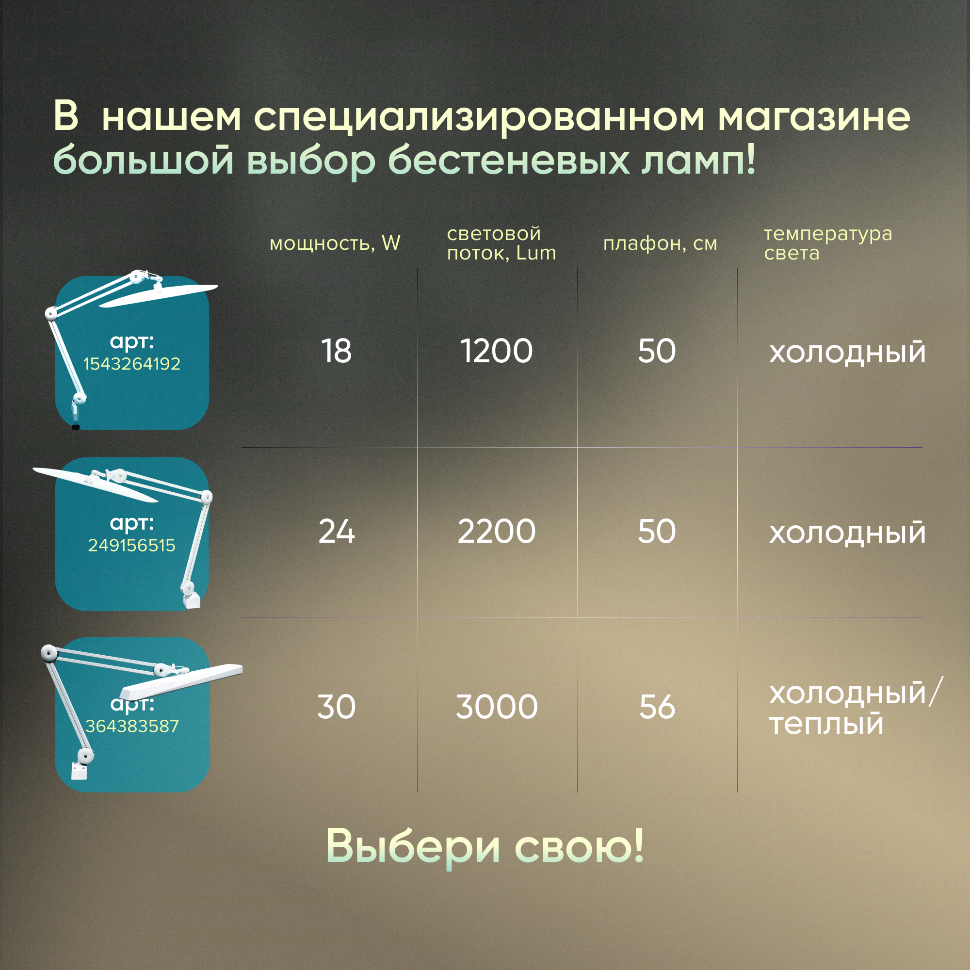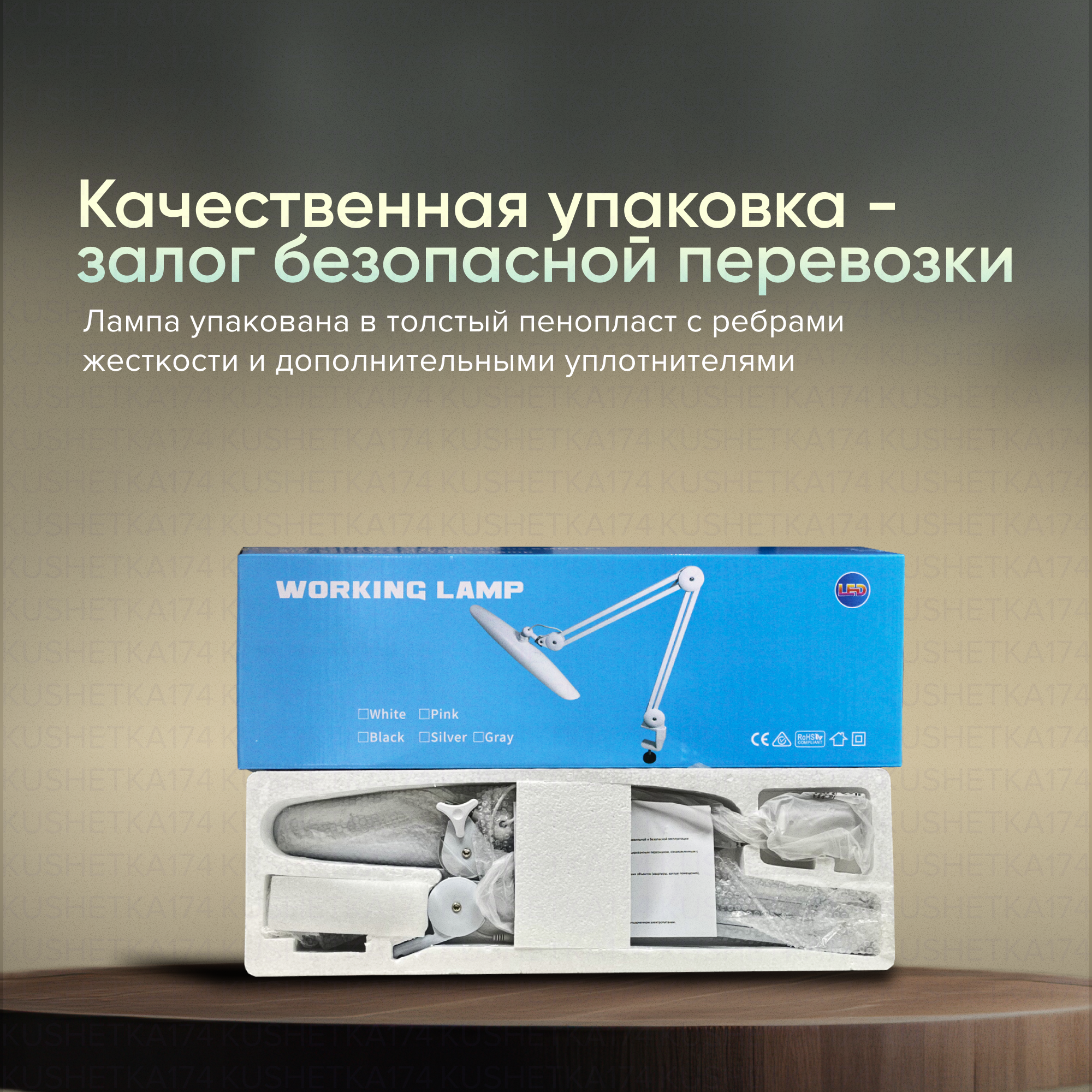 Лампа Бестеневая на струбцине Working 18w для мастеров наращивания ресниц, косметологов, маникюра, черная интересное:
