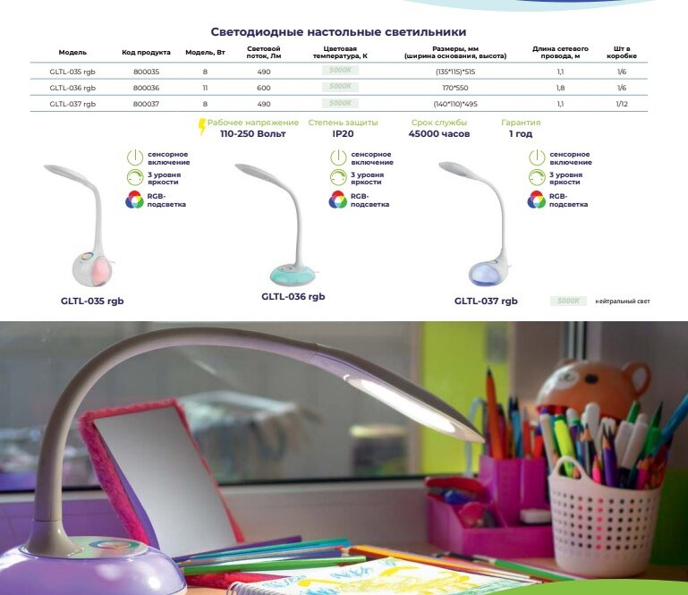 | Вид ламп | люминесцентные / накаливания / светодиодные |
