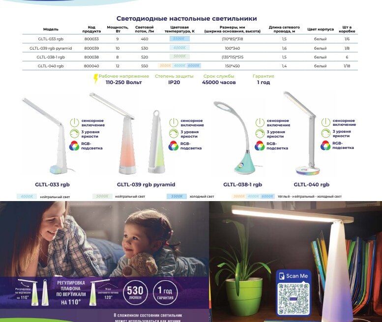 | Вид ламп | люминесцентные / накаливания / светодиодные |