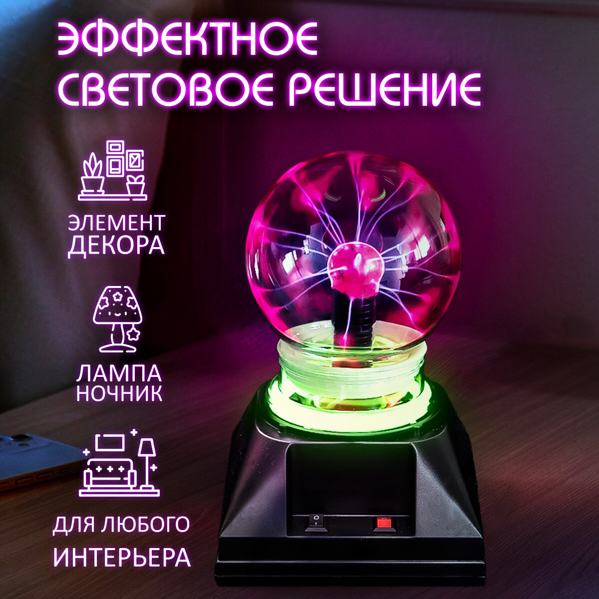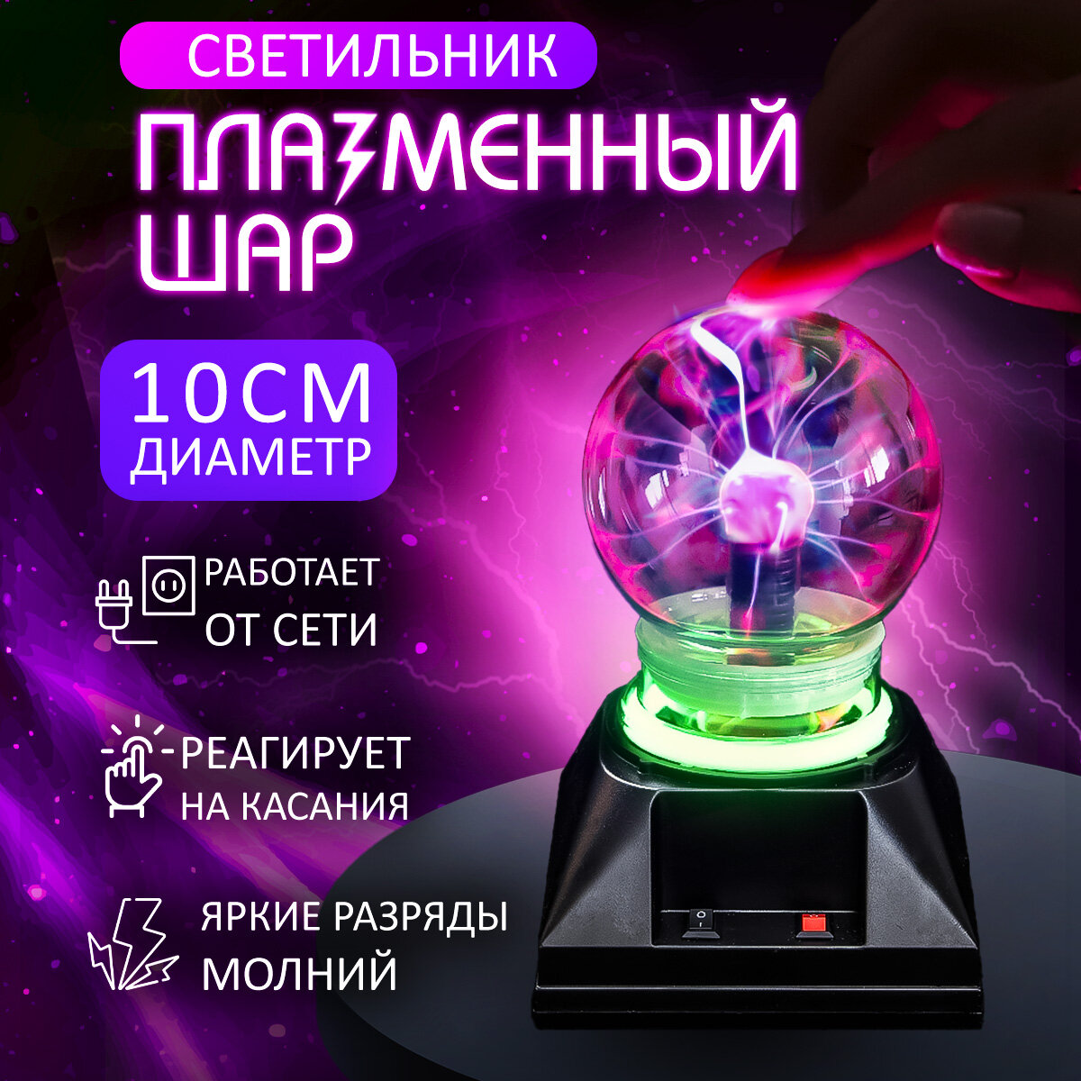 Купить Светильник Плазменный шар "Плазма Plasma" D-10 см, гигантский магический шар с молниями, подарок