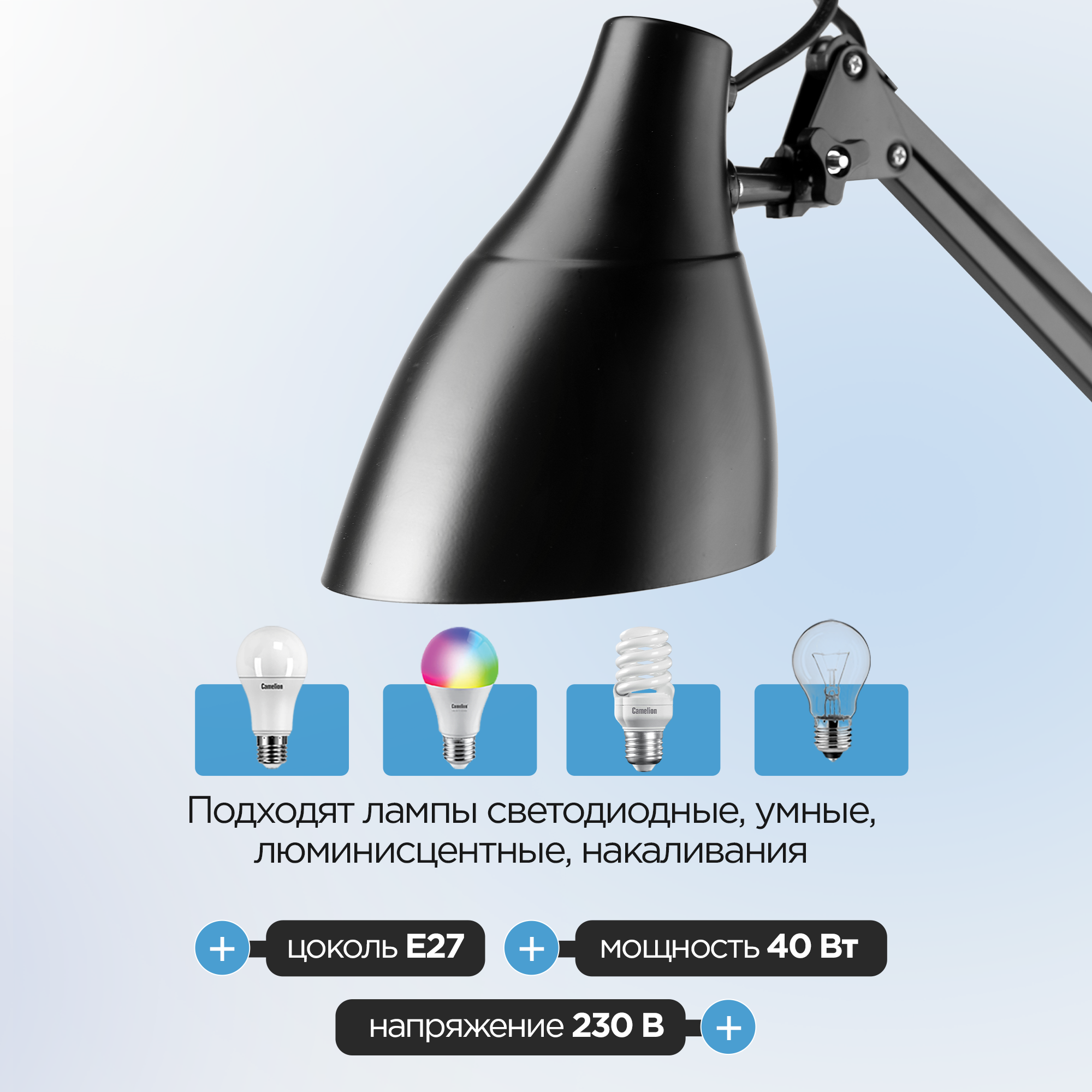| Особенности | регулировка наклона плафона / регулировка по высоте / с абажуром |