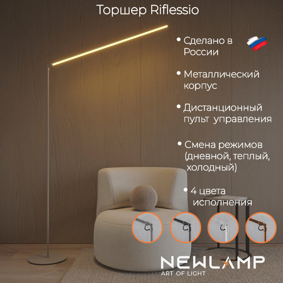 Серебристый напольный торшер Riflessio с пультом ДУ и диммированием интересное: