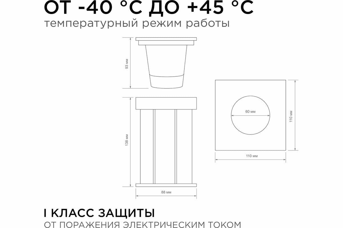 | Подробная комплектация | Уличный светильник, 2 дюбеля и 2 винтовых самореза, установочная коробка, инструкция |