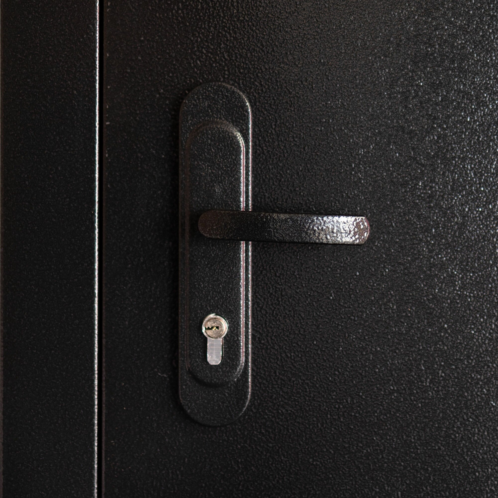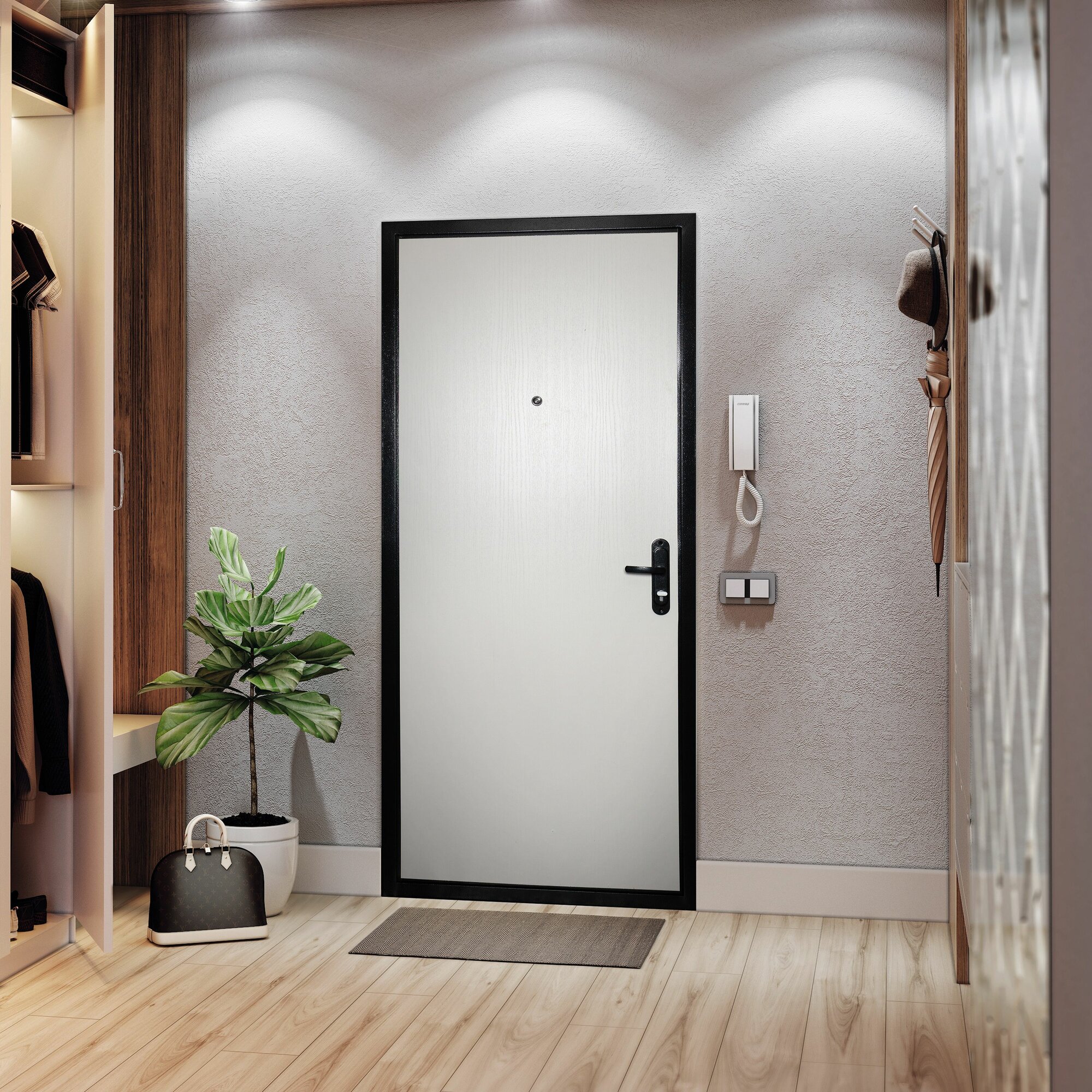 Дверь входная для квартиры Unicorn металлическая Terminal 860х2050, открывание вправо, антивандальное покрытие, уплотнитель, противосъемные ригели, цилиндровый замок, черный/белый