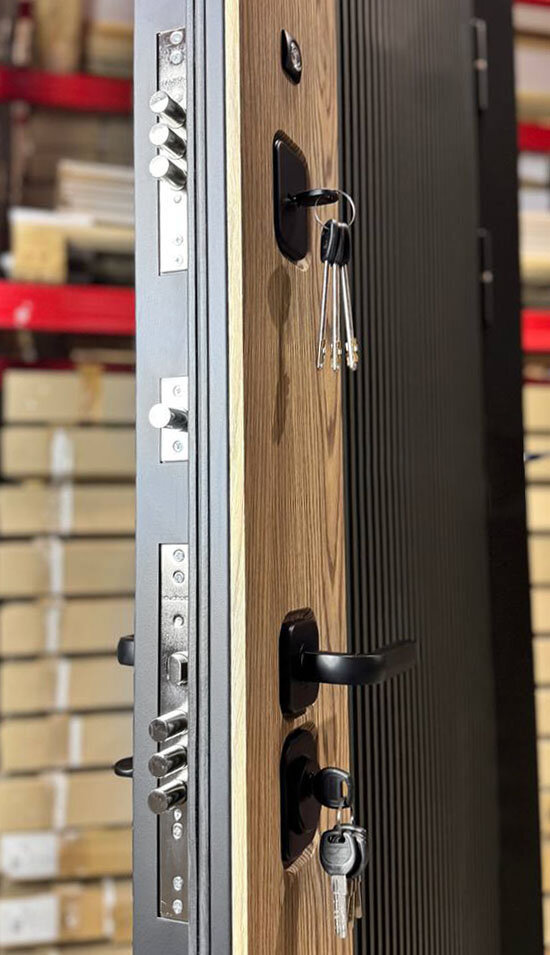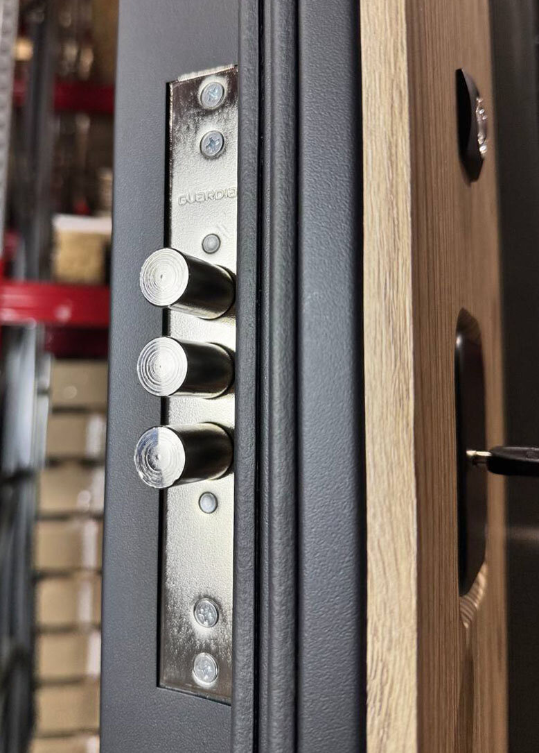 | Комплектация двери | броненакладка / глазок / задвижка / замок / петли / противосъемные штыри / ручки / эксцентрик |