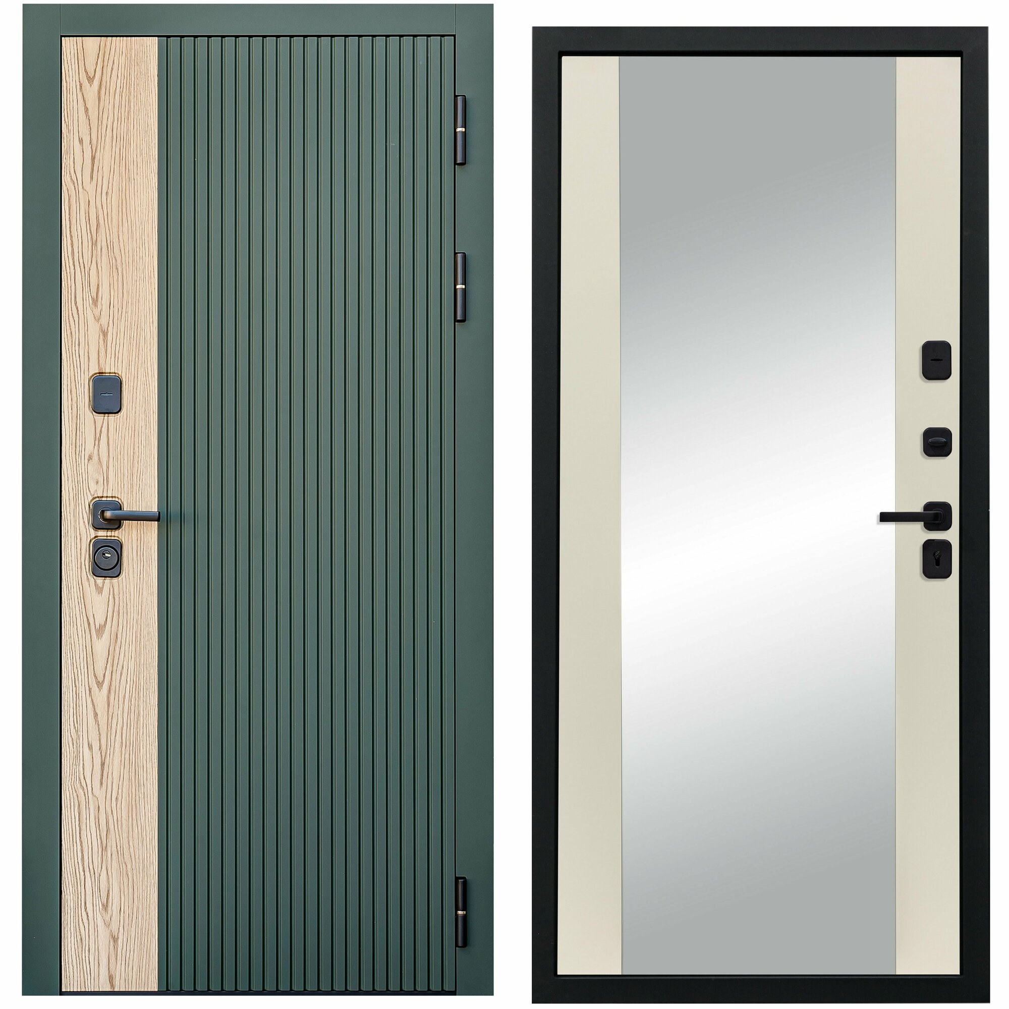 Дверь входная металлическая DIVA 74 Зеркало 2050x960 Правая Дуб Олива софт - Д15 Сандал белый, УТ-00079846
