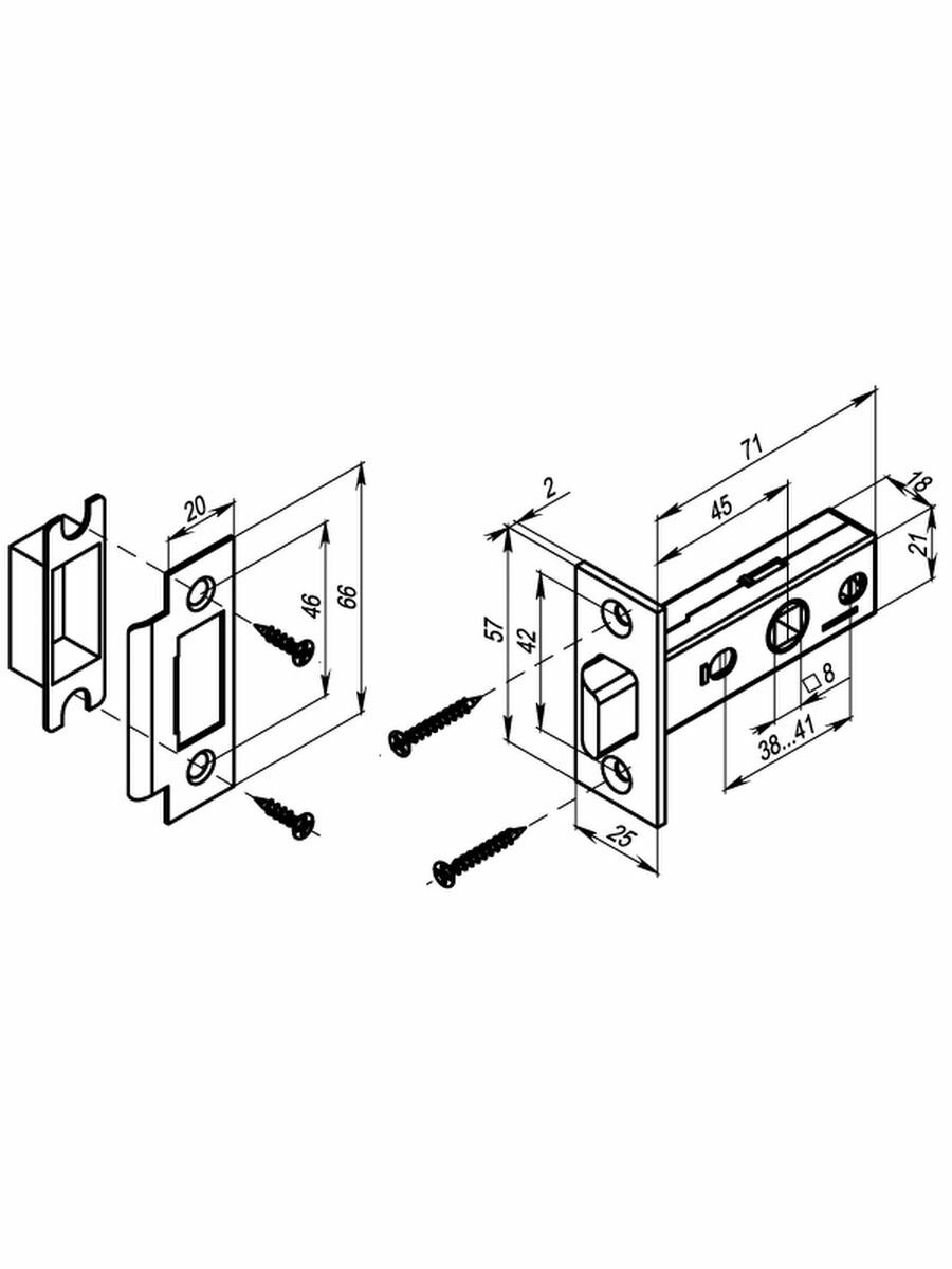Защелка врезная l45-8 cp хром