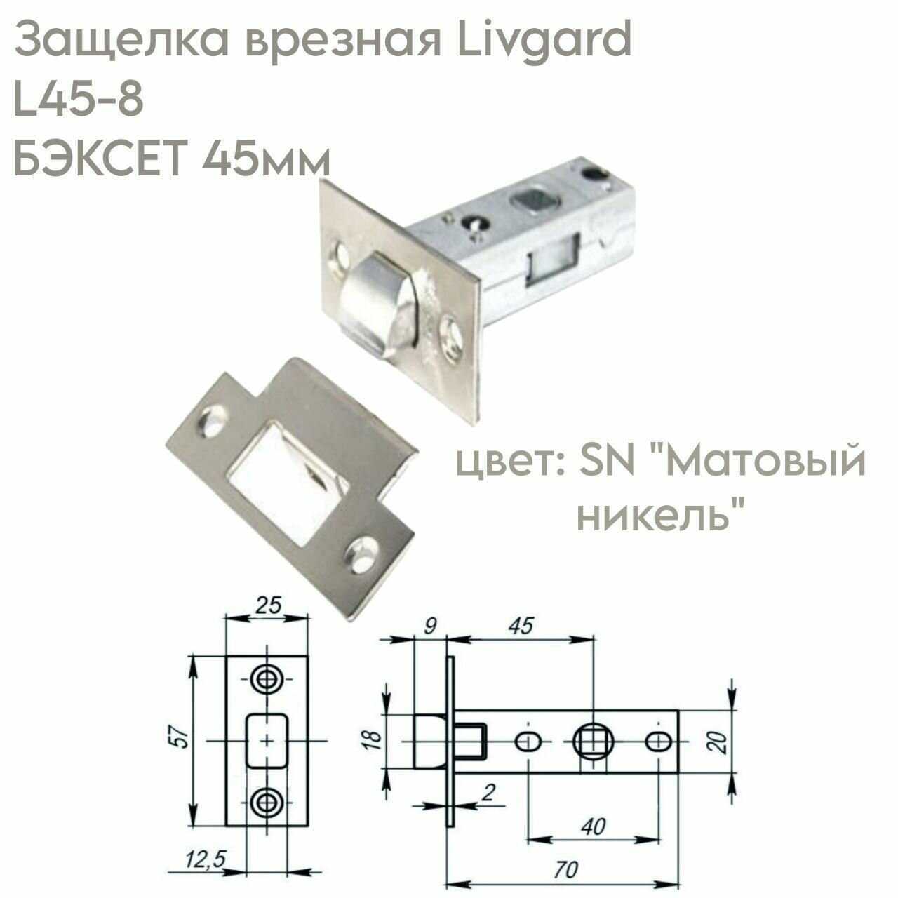 Защелка врезная l45-8 sn никель матовый