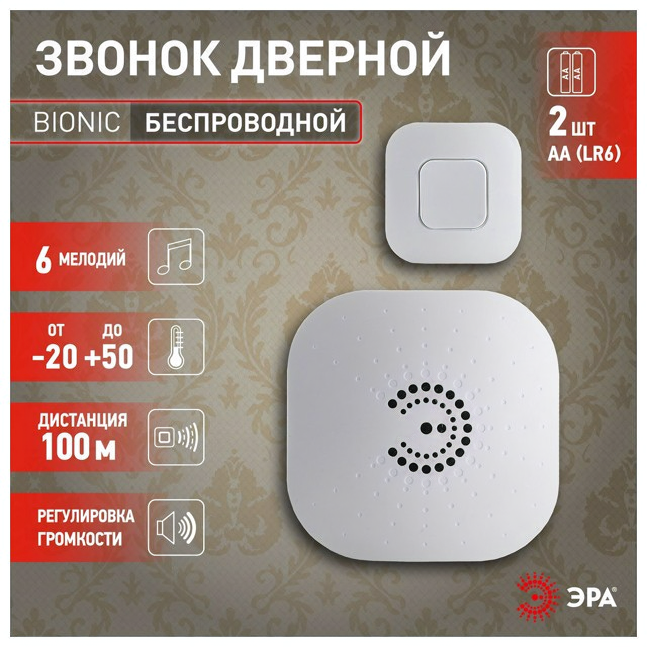 Звонок беспроводной bionic white, 6 мелодий, белый эра