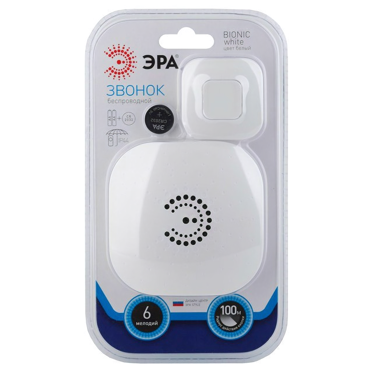 Звонок беспроводной белый IP44 2хАА + CR2032(3в) 6мел 100м BIONIC White ЭРА