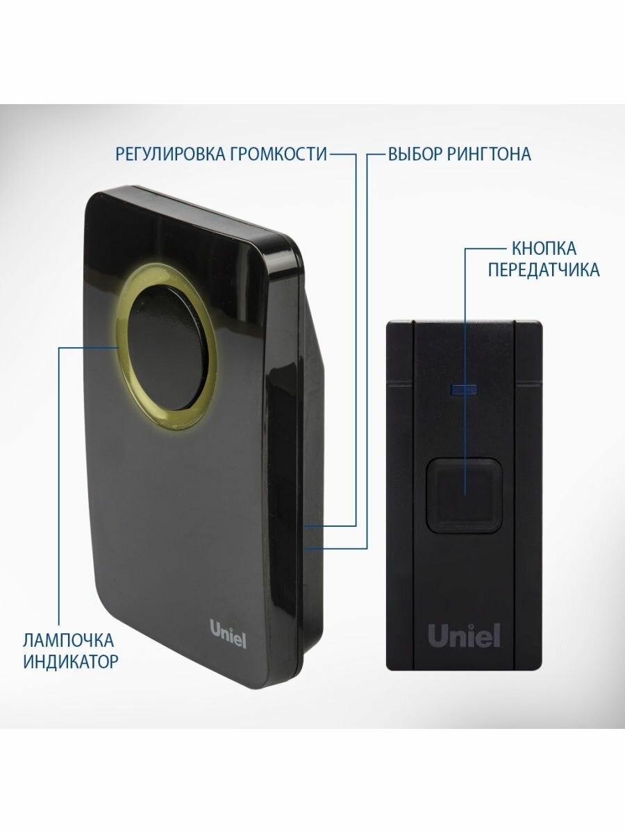 Купить Звонок с кнопкой Uniel UDB-014W-R1T1-36S-100M-BL электронный беспроводной (количество мелодий: 36) черный