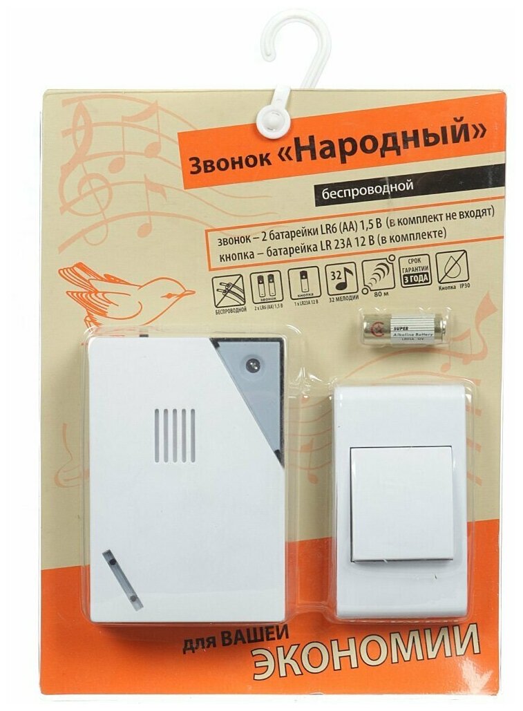 Звонок народный ЗББ-Н-11/2-32М (беспр., бат., блистер, откр.код) интересное: