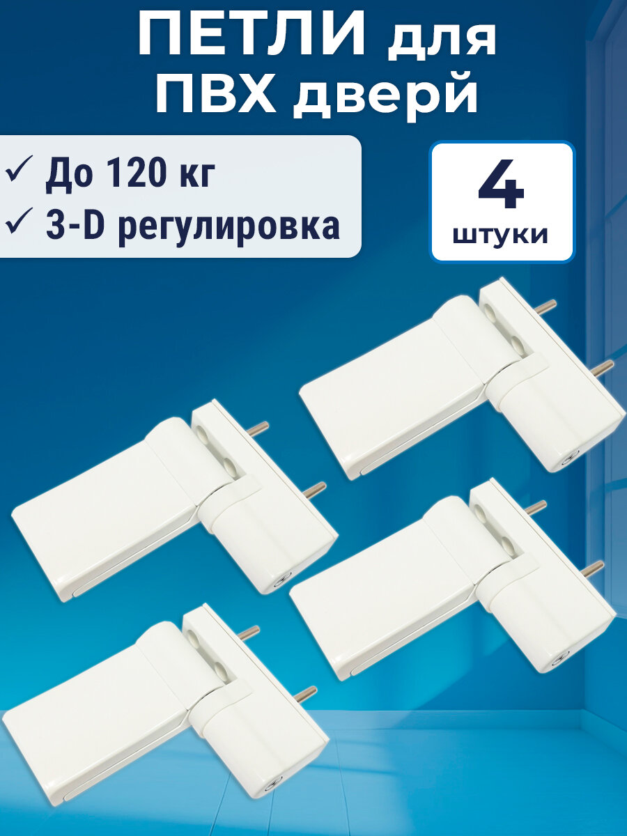 Лот 4 шт: Петля дверная для ПВХ дверей до 120 кг, 3-D регулировка, белая интересное: