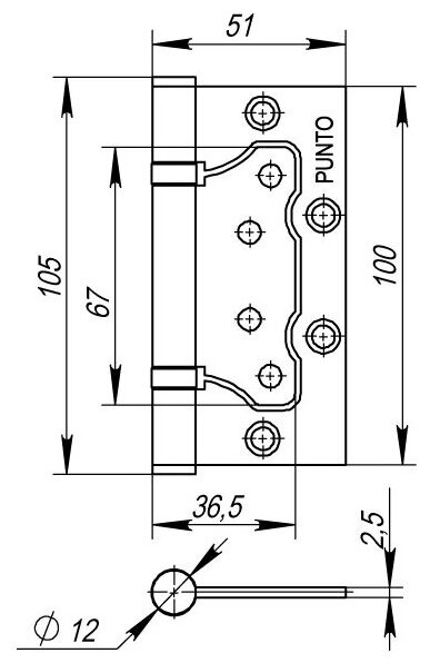 Петля универсальная без врезки Punto 200-2B 100x2,5 BL (черный)