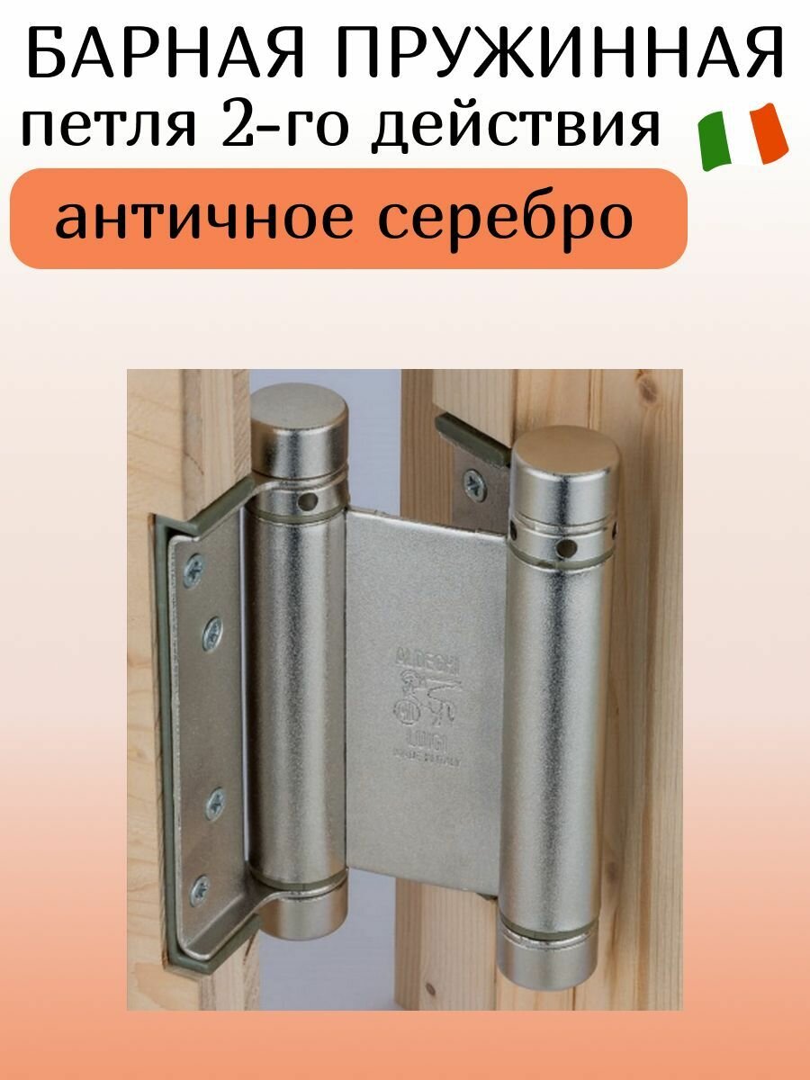 Барная пружинная петля двойного действия ALDEGHI LUIGI SpA 148х50х42 мм, античное серебро, к-т: 2 шт + ключ с декоративными шурупами, 101FA150B