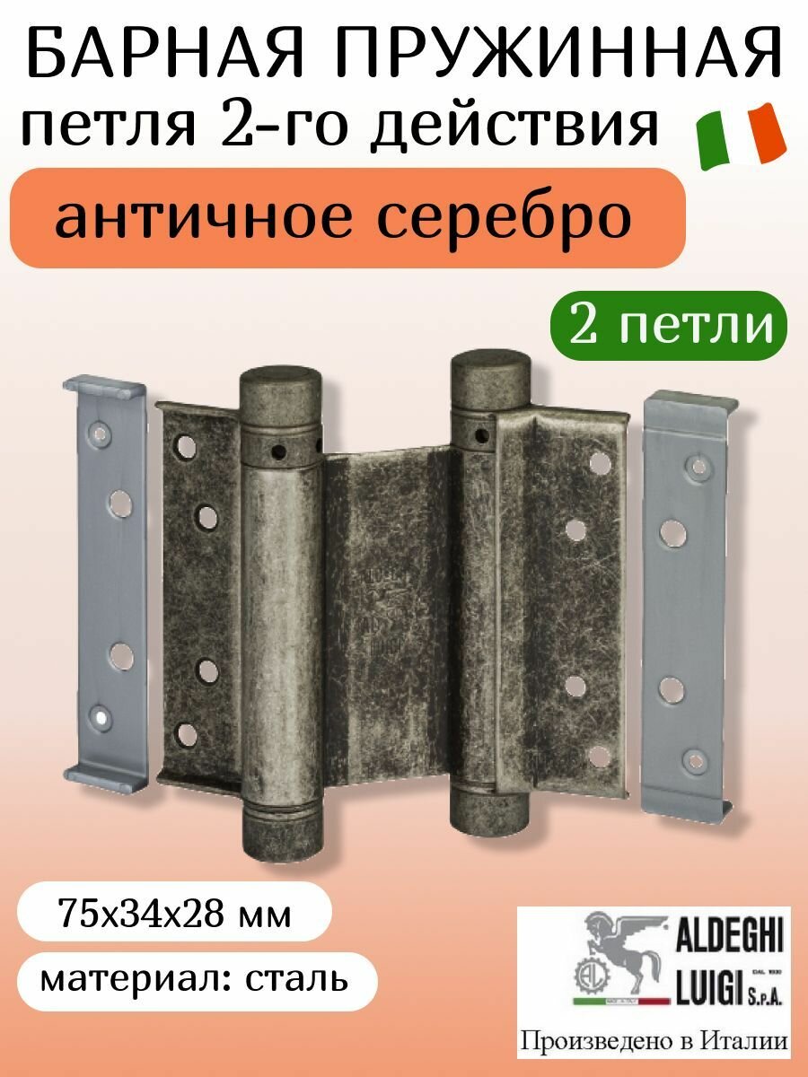 Барная пружинная петля двойного действия ALDEGHI LUIGI S.p.A. 125х48х42 мм, цвет: античное серебро, к-т: 2 шт + ключ с декоративными заглушками
