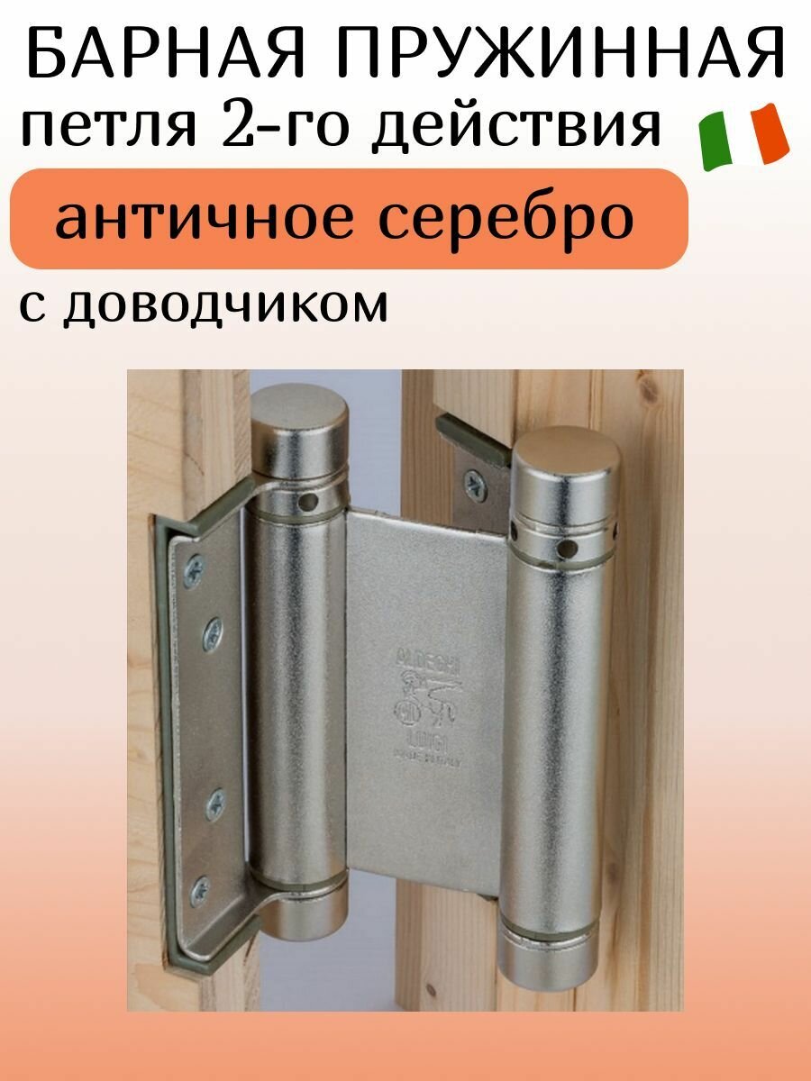 Барная пружинная петля двойного действия ALDEGHI LUIGI SpA 148х50х42 мм, античное серебро, к-т: 2 шт + ключ с декоративными шурупами, 101FA150B