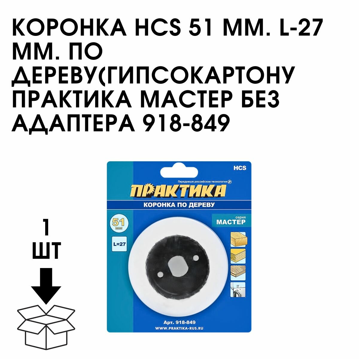 Коронка HCS по дереву/гипсокартону ПРАКТИКА "Мастер" 51 мм, L-27мм, без адаптера (1 шт)