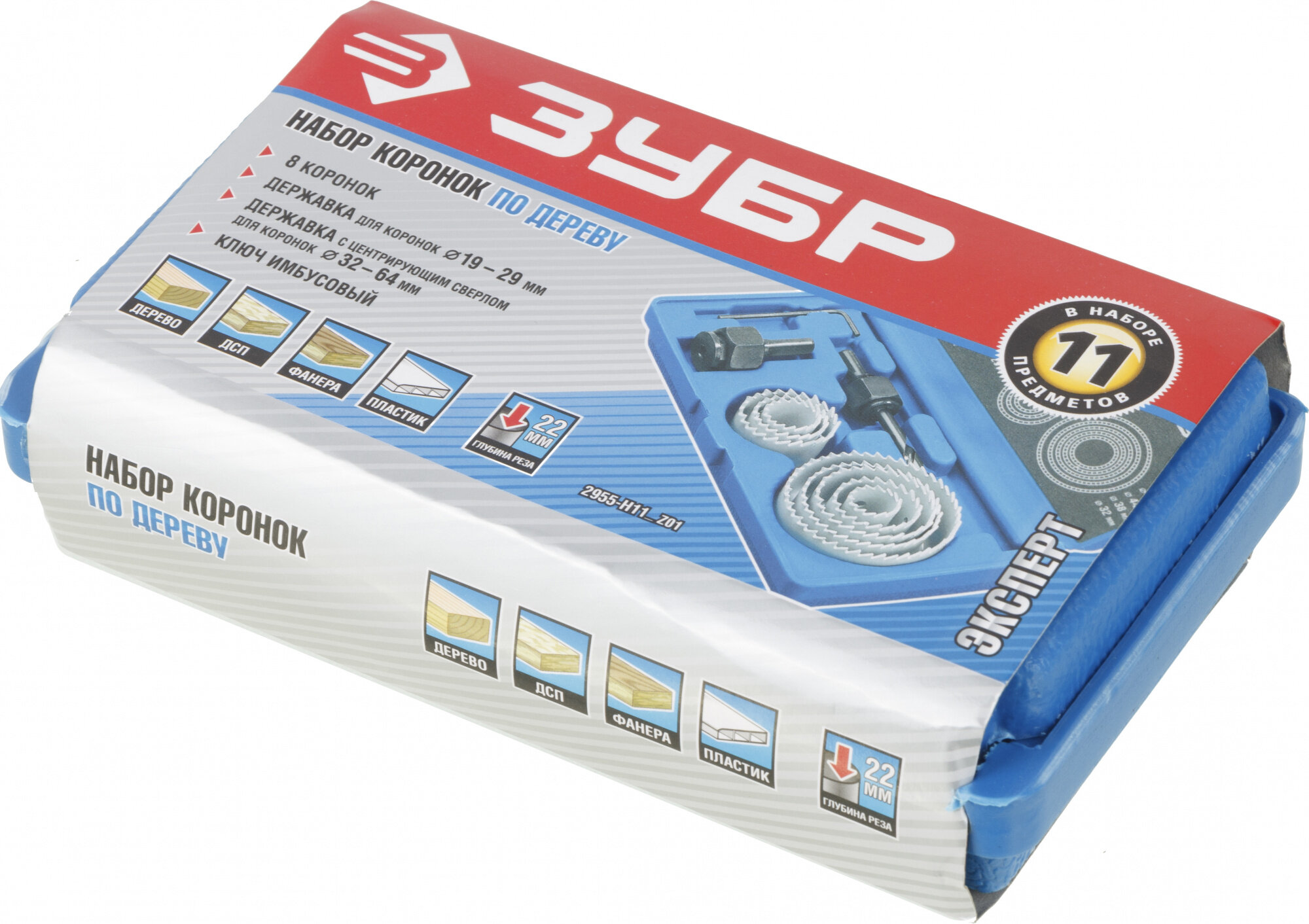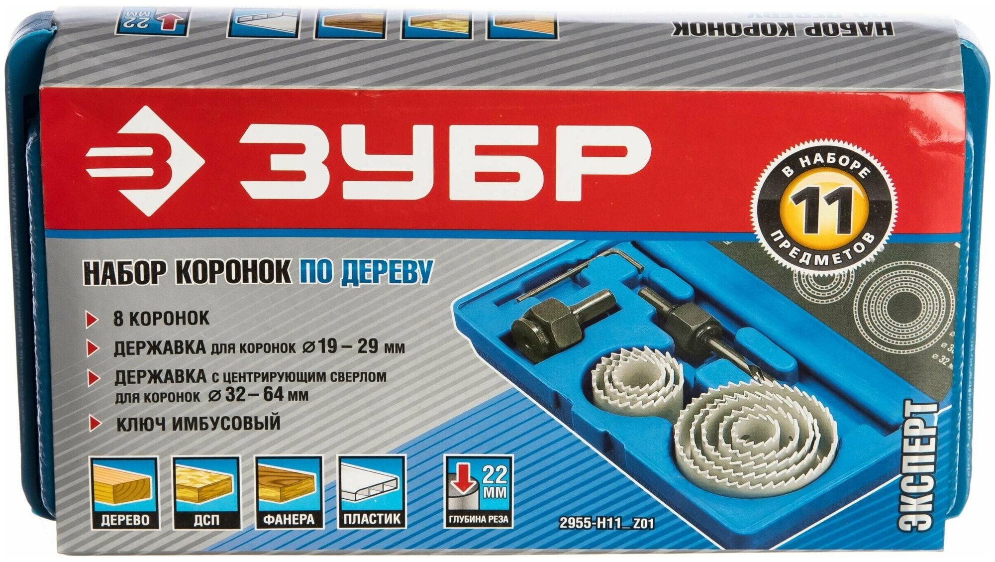Набор коронок по дереву ЗУБР Эксперт 11 предметов, 19-64 мм 2955-H11_z01