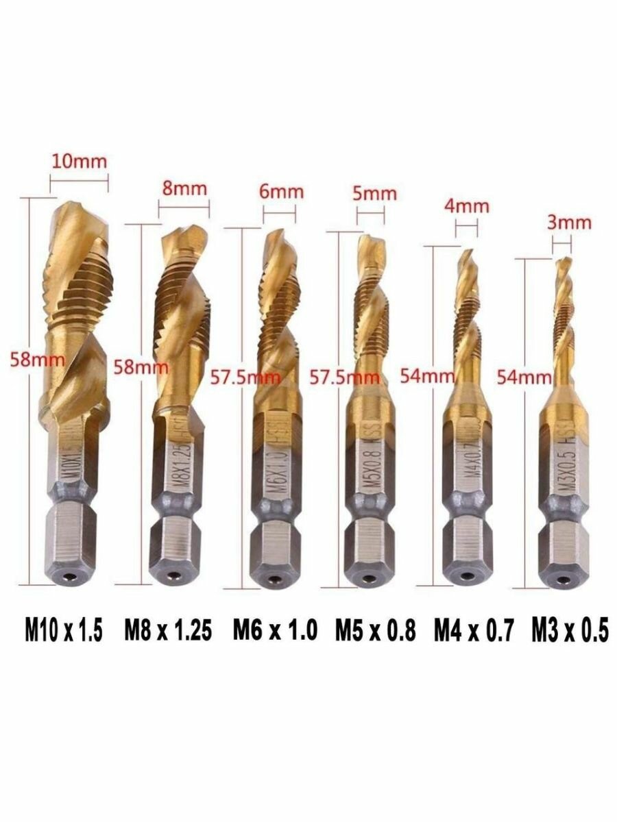 Сверло-метчик с титановым покрытием по металлу , набор из 6 штук, Набор метчиков по металлу в боксе , Сверло метчик с титановым покрытием интересное: