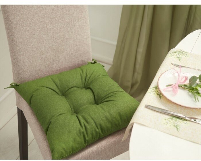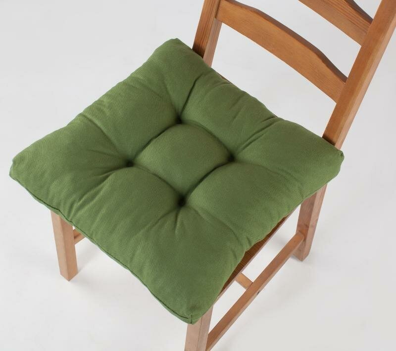 Купить Подушка на стул высокая, Guten Morgen, Рогожка, Цвет: Зеленый 40х40 см